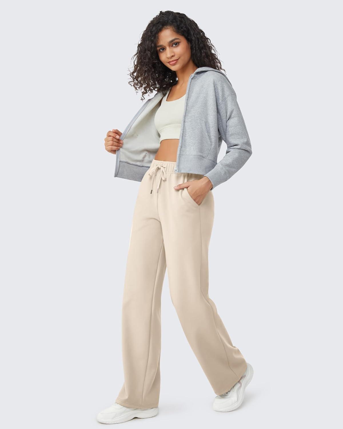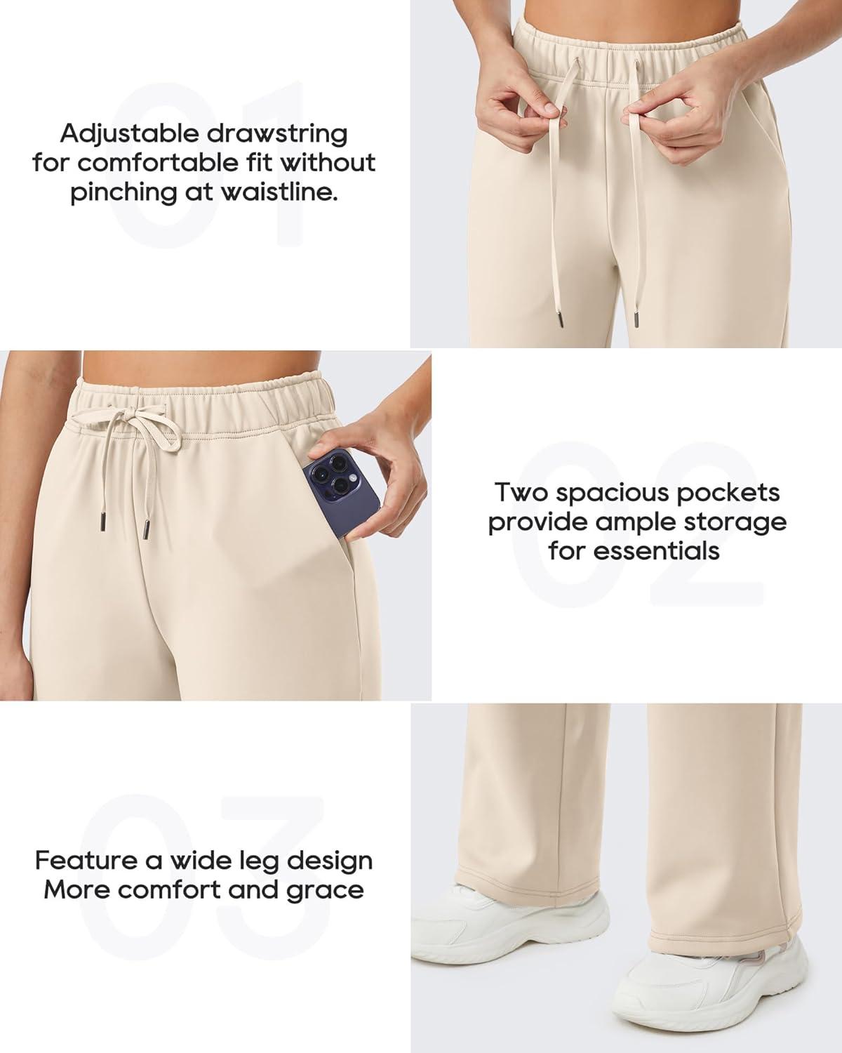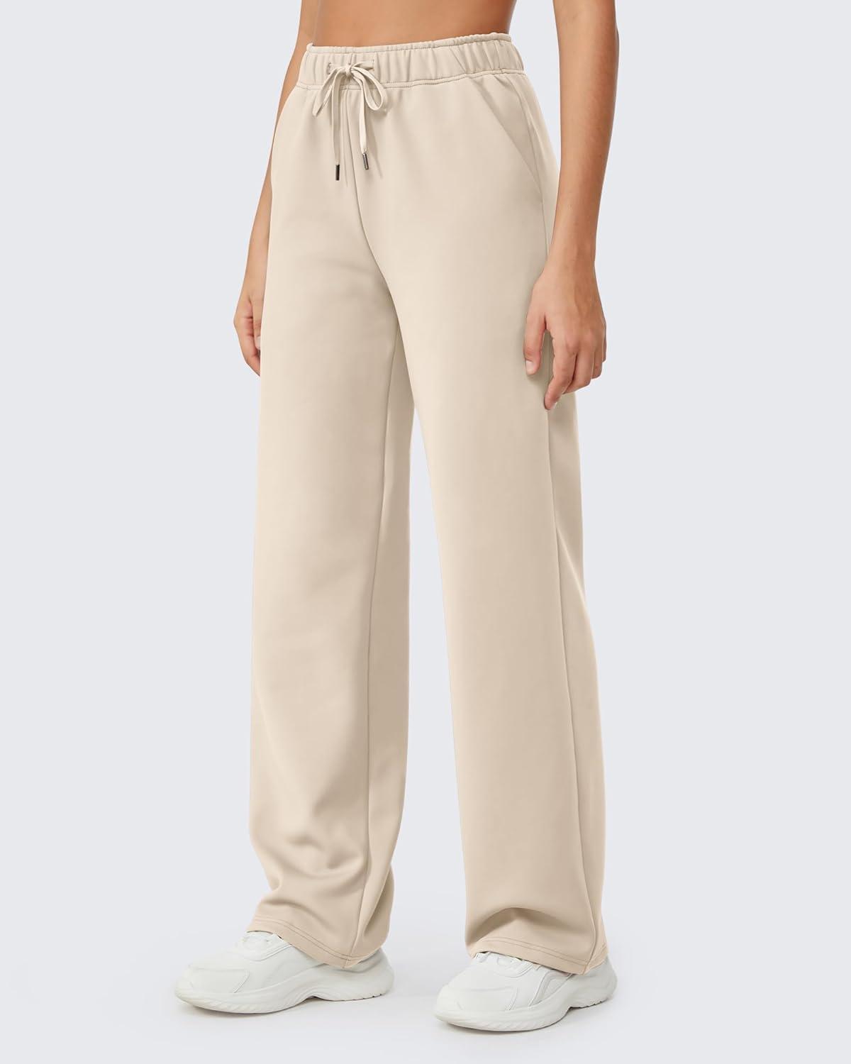 G4Free Fleece Lined Sweaterpants Women Elastic Drawstring Wide Leg Winter Trousers with Pockets for Casual Work(Light Khaki)
