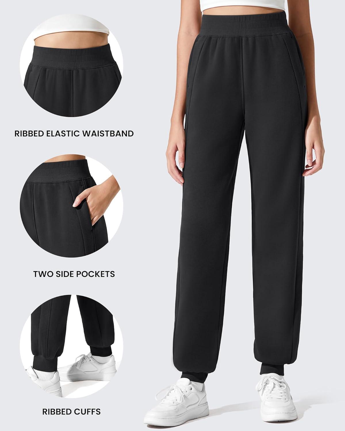 G4Free Flurrylux Cotton Fleece Lined Joggers for Women Elastic Waist Scrub Sweatpants Tapered Leg Track Pants(Black)