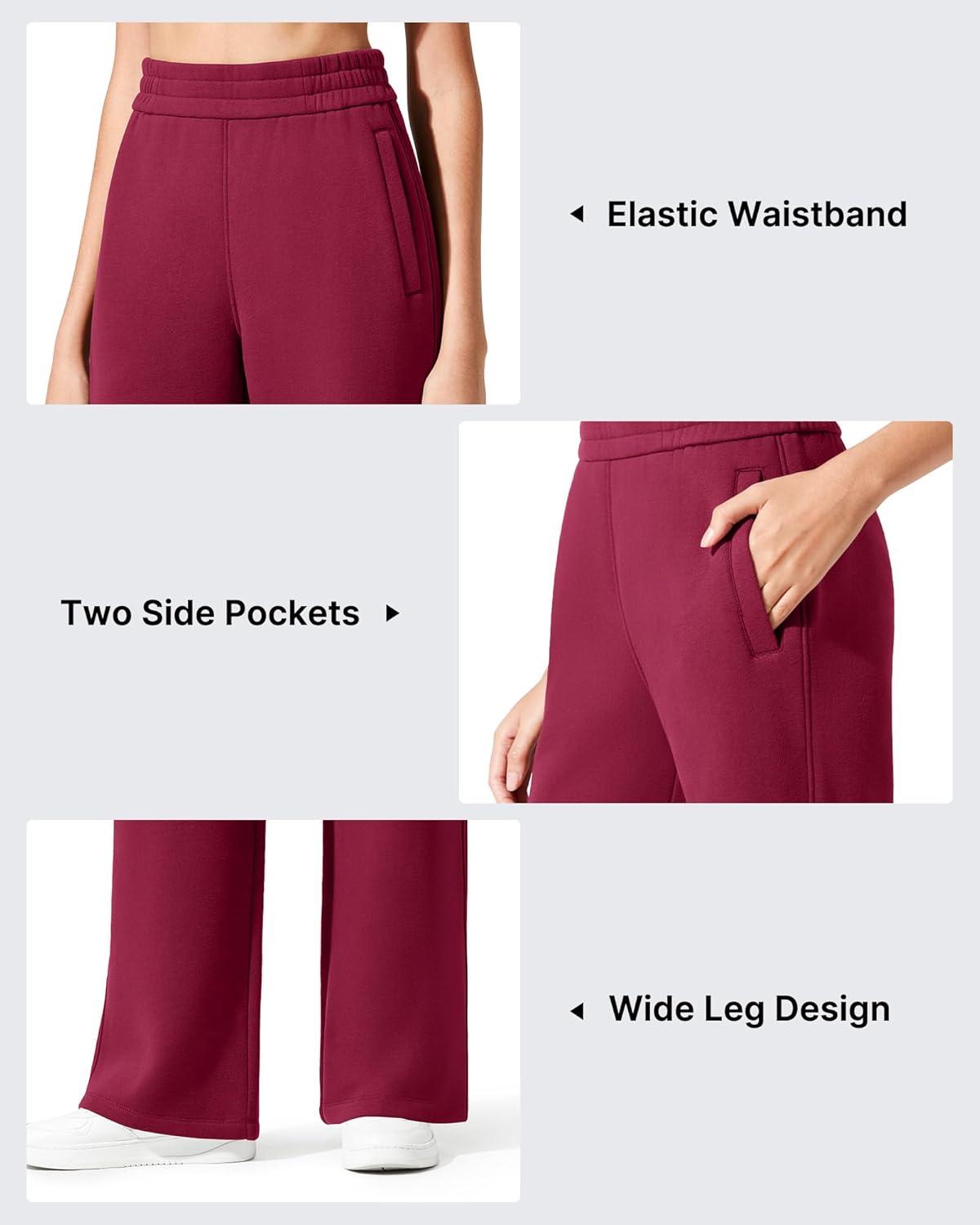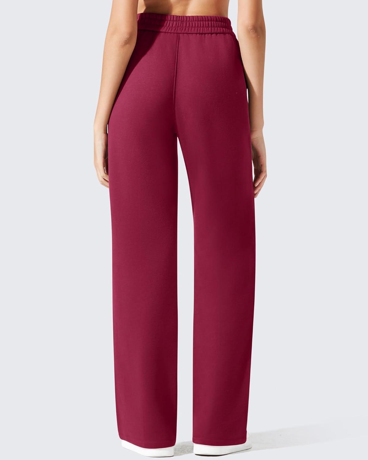 G4Free Flurrylux Cotton Fleece Lined Sweatpants Women Elastic Waist Wide Leg Lounge Pants Warm Winter(Rumba Red)