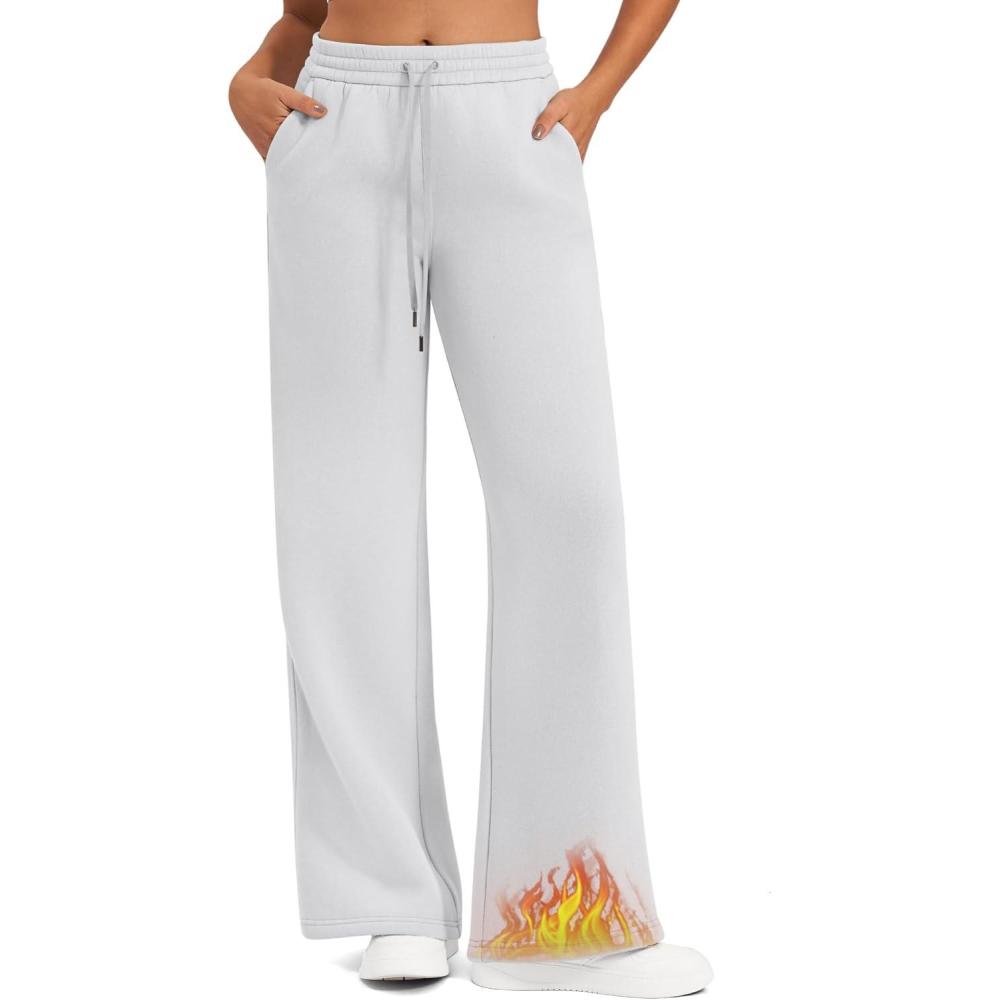 G4Free Flurrylux Fleece Lined Sweatpants Women Cotton Wide Leg Pants with Pockets Lounge Casual(Light Gray)