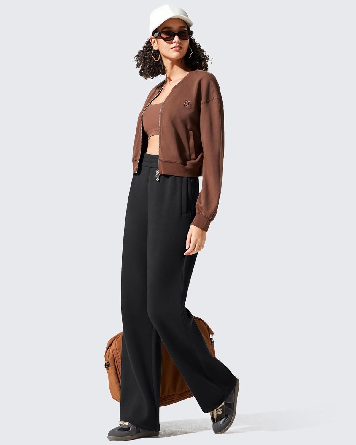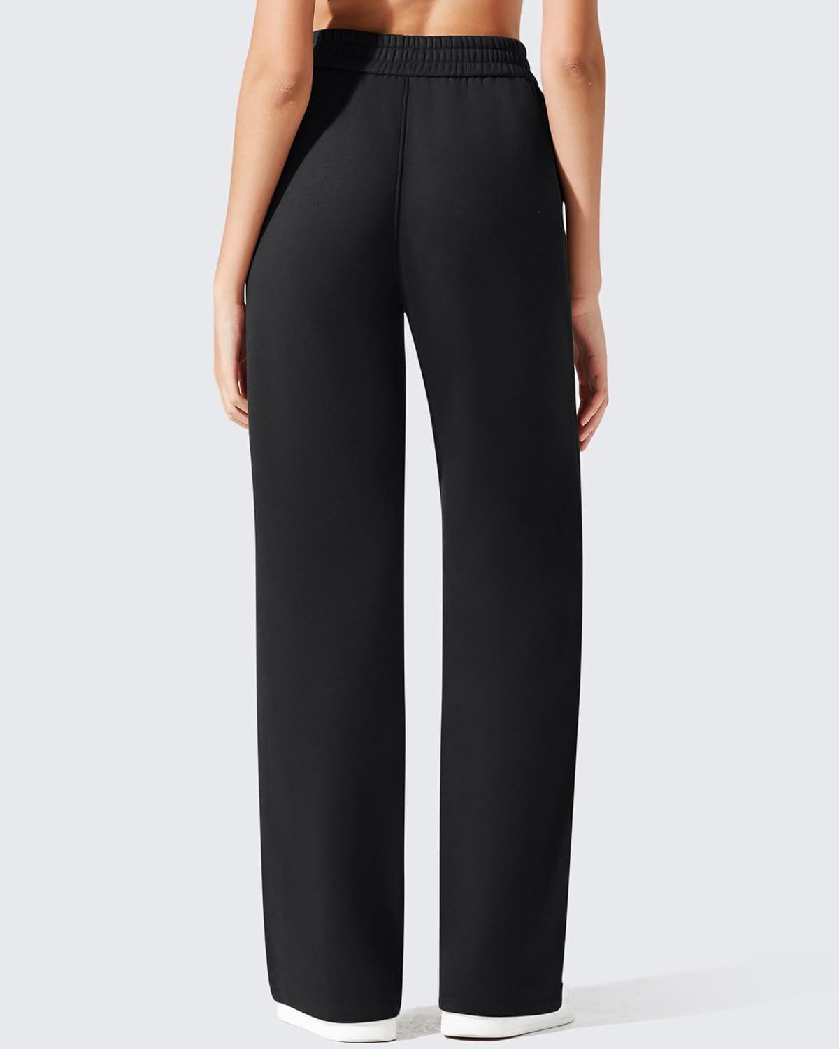 G4Free Flurrylux Womens Fleece Lined Wide Leg Sweatpants Cotton Thermal Warm Lounge Pants Winter Casual(Black)