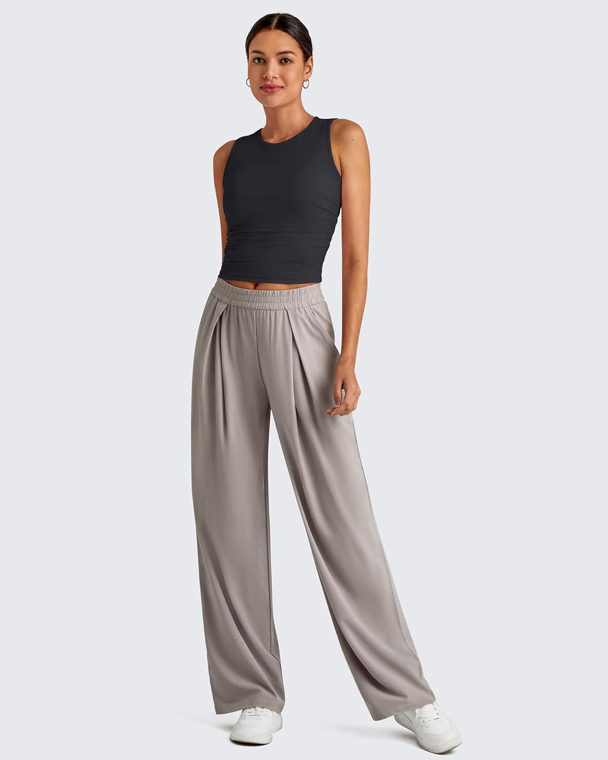 G4Free Lightbreeze Workout Tank Tops for Women Side Ruched Sleeveless High Neck Crop Top Summer Athletic Gym Shirts(Pink)