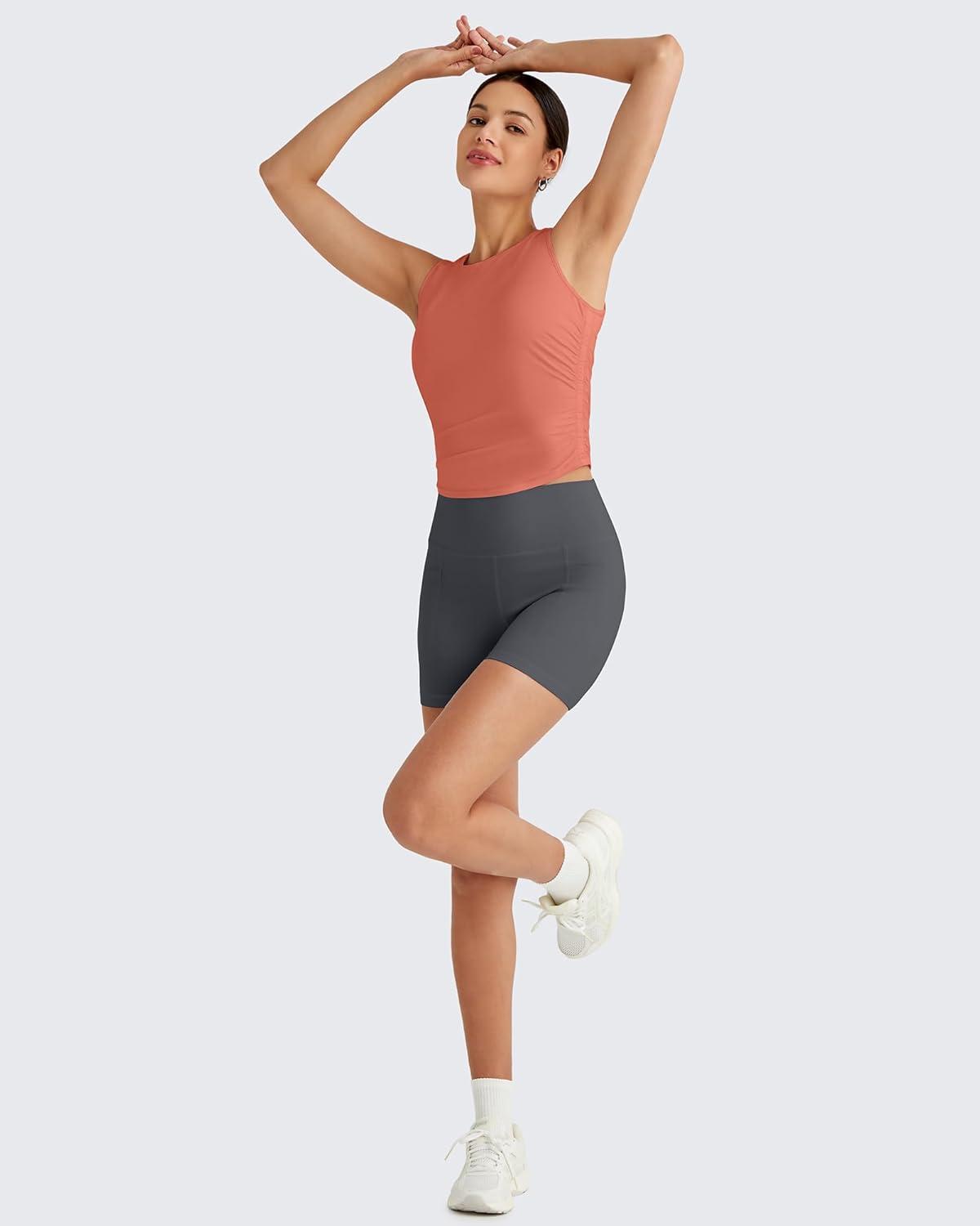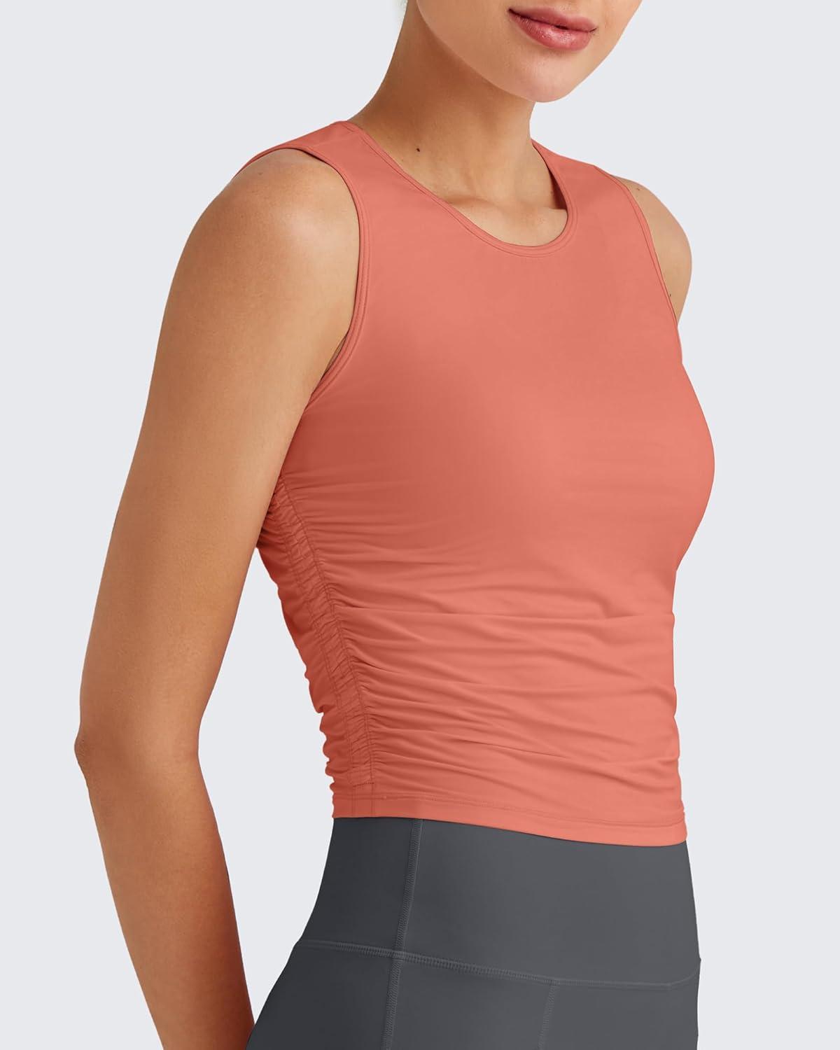 G4Free Lightbreeze Workout Tank Tops for Women Side Ruched Sleeveless High Neck Crop Top Summer Athletic Gym Shirts(Burnt Orange)