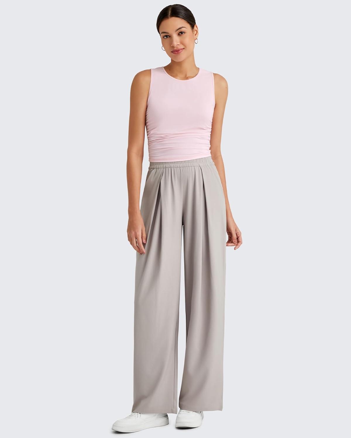G4Free Lightbreeze Workout Tank Tops for Women Side Ruched Sleeveless High Neck Crop Top Summer Athletic Gym Shirts(Pink)