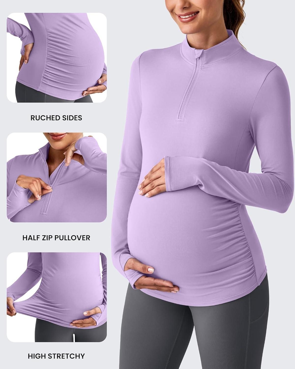 imageG4Free Lightweight Maternity Long Sleeve Workout Tops UPF 50 Rash Guard Half Zip Sun Shirts Ruches Pregnancy PulloverPurple