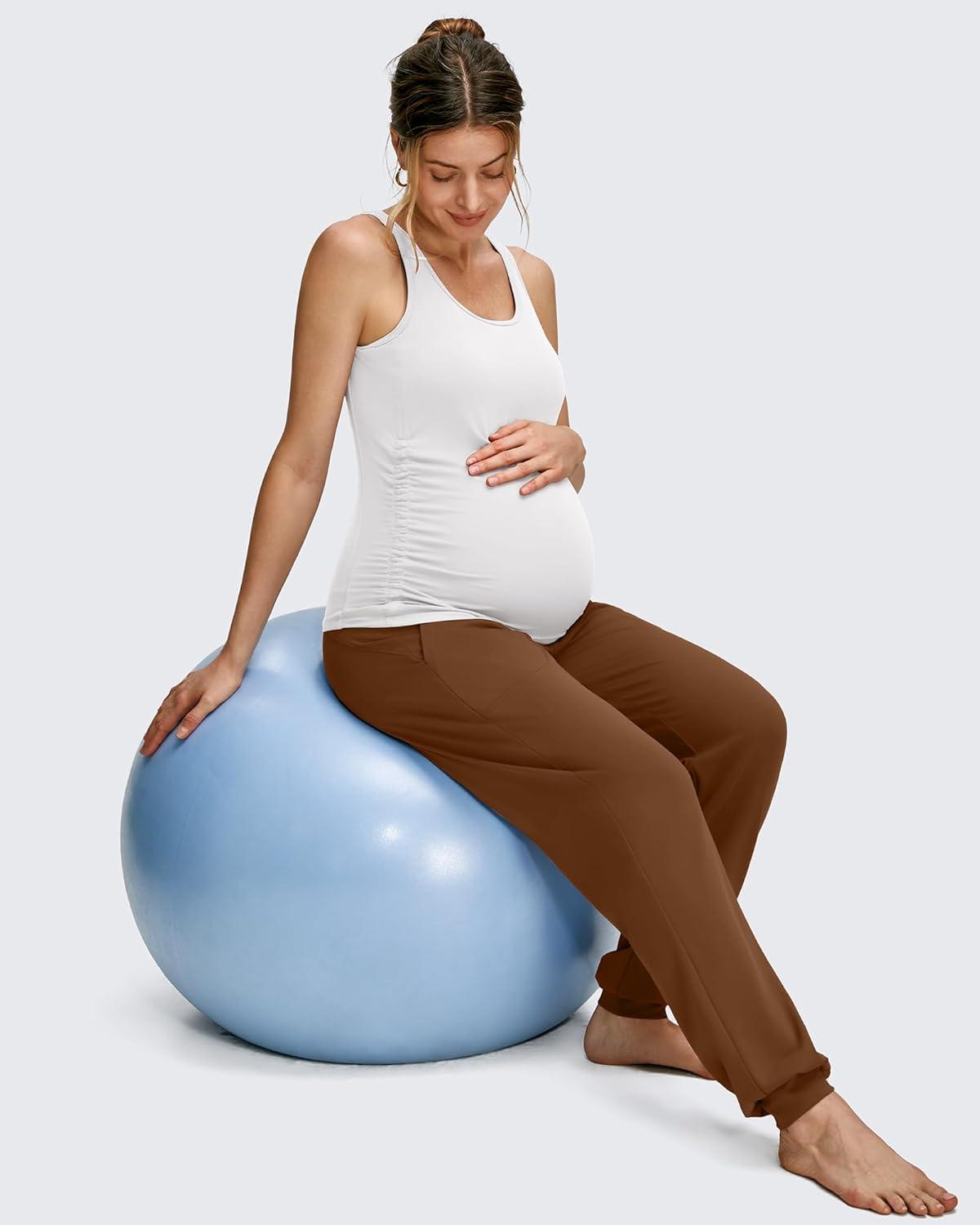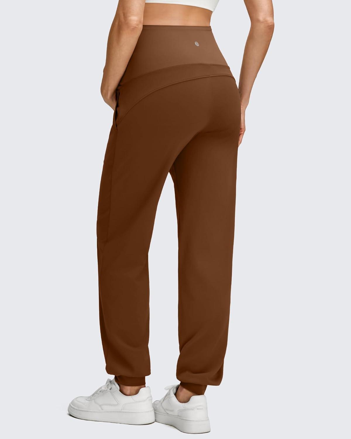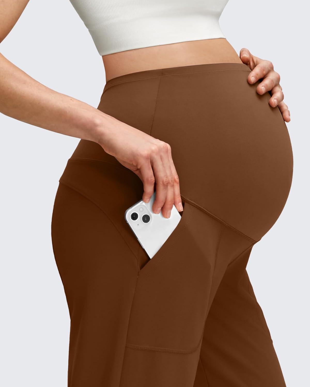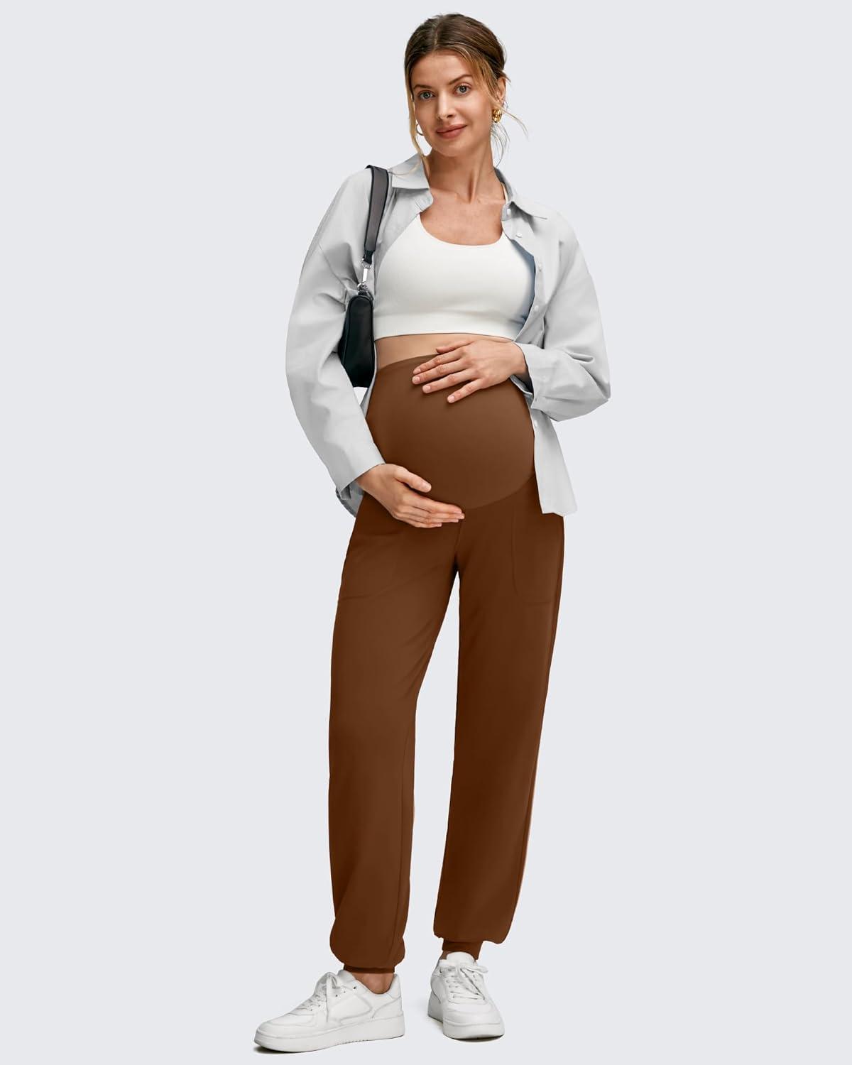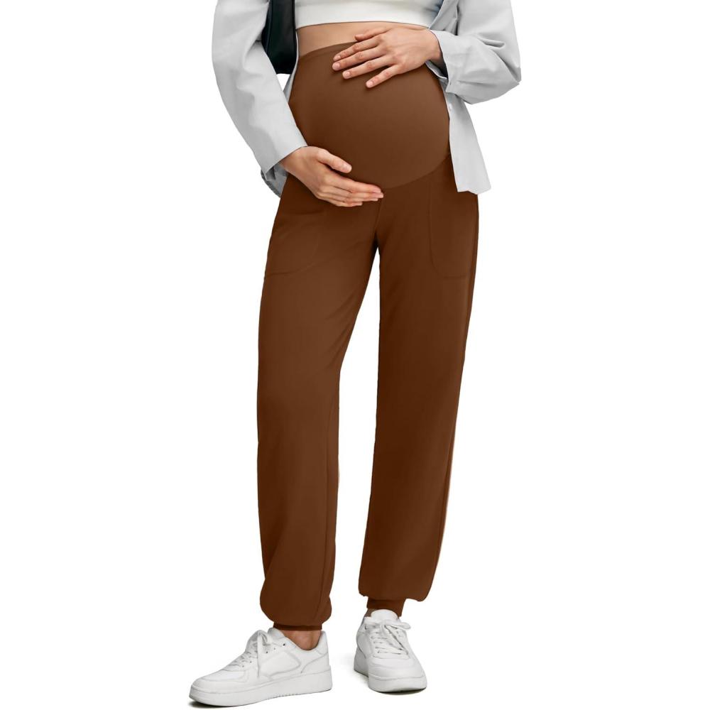 G4Free Maternity Pants Stretchy Workout Lounge Pants Over The Belly Pregnancy Joggers with Pockets(Dark Coffee)