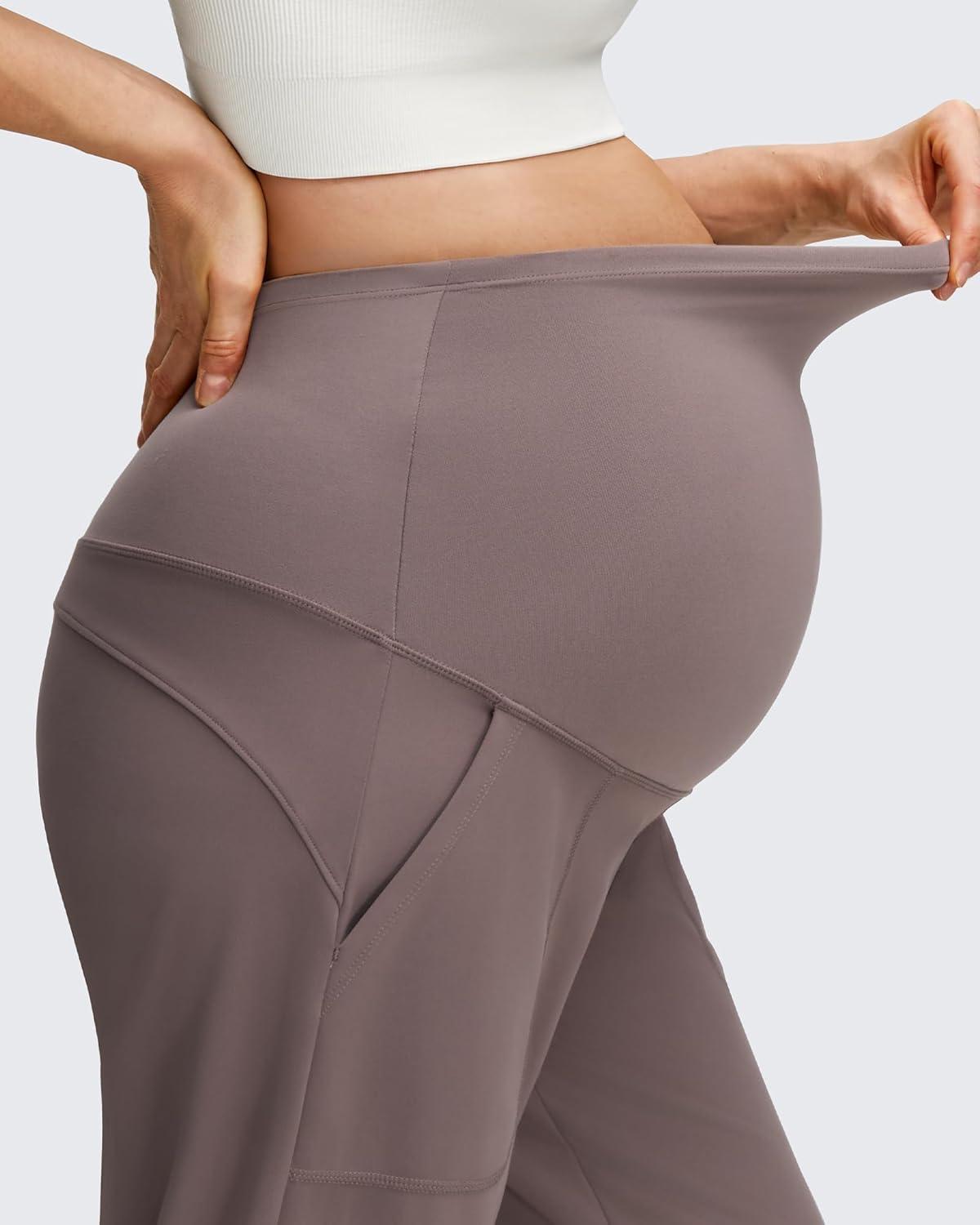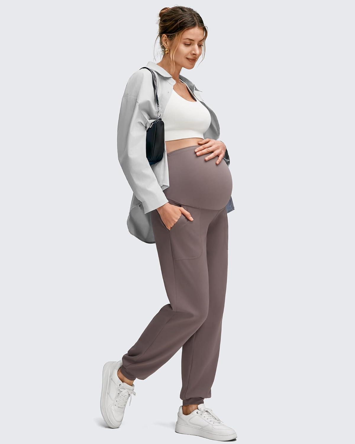 G4Free Maternity Pants Stretchy Workout Lounge Pants Over The Belly Pregnancy Joggers with Pockets(Taupe)