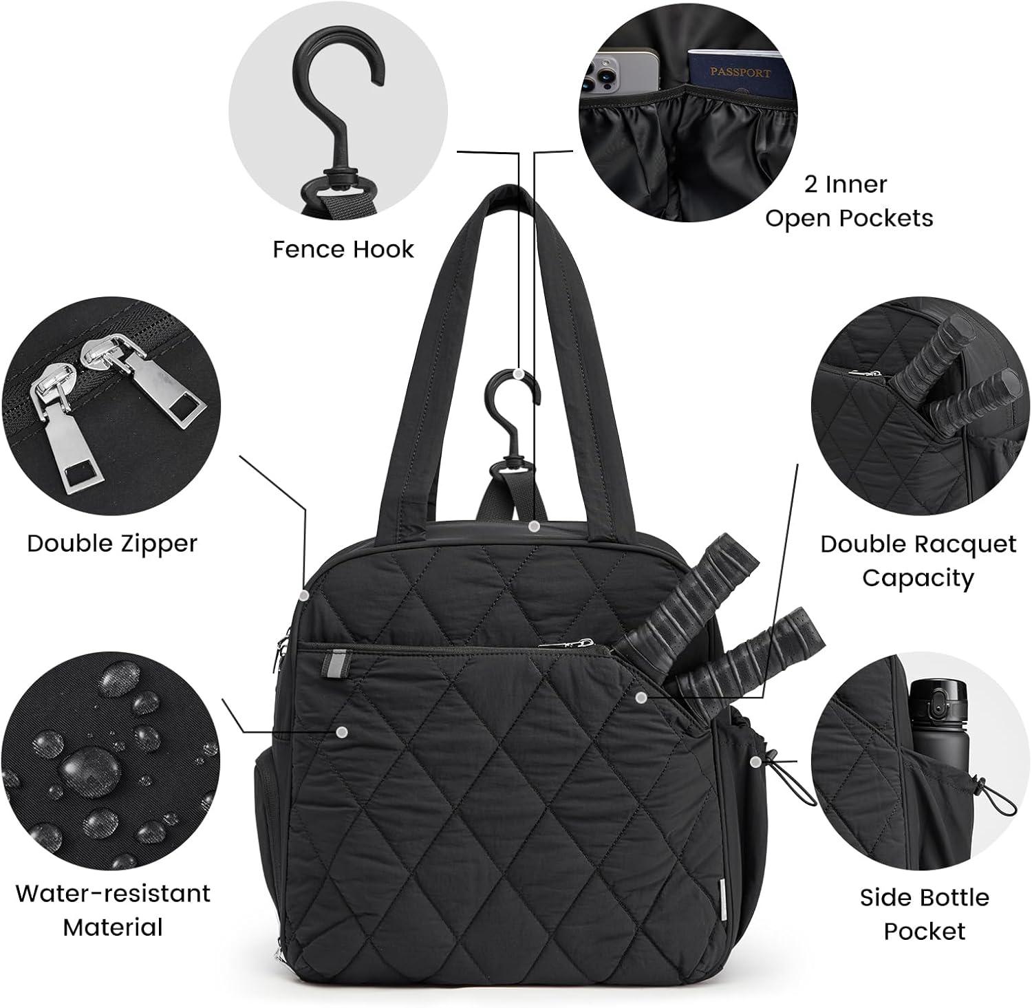 G4Free Pickleball Bag, Pickleball Backpack for Men and Women, Tote with Shoe Compartment and Waterproof Pocket(Black)