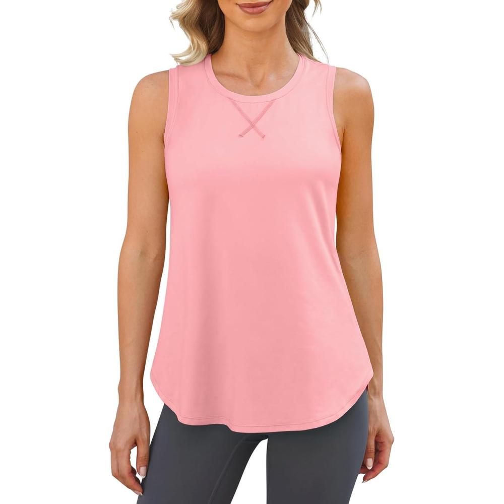 imageG4Free Racerback Workout Tank Tops for Women High Neck Athletic Long Tanks Fast Dry Sleeveless Pilates Running ShirtsPink