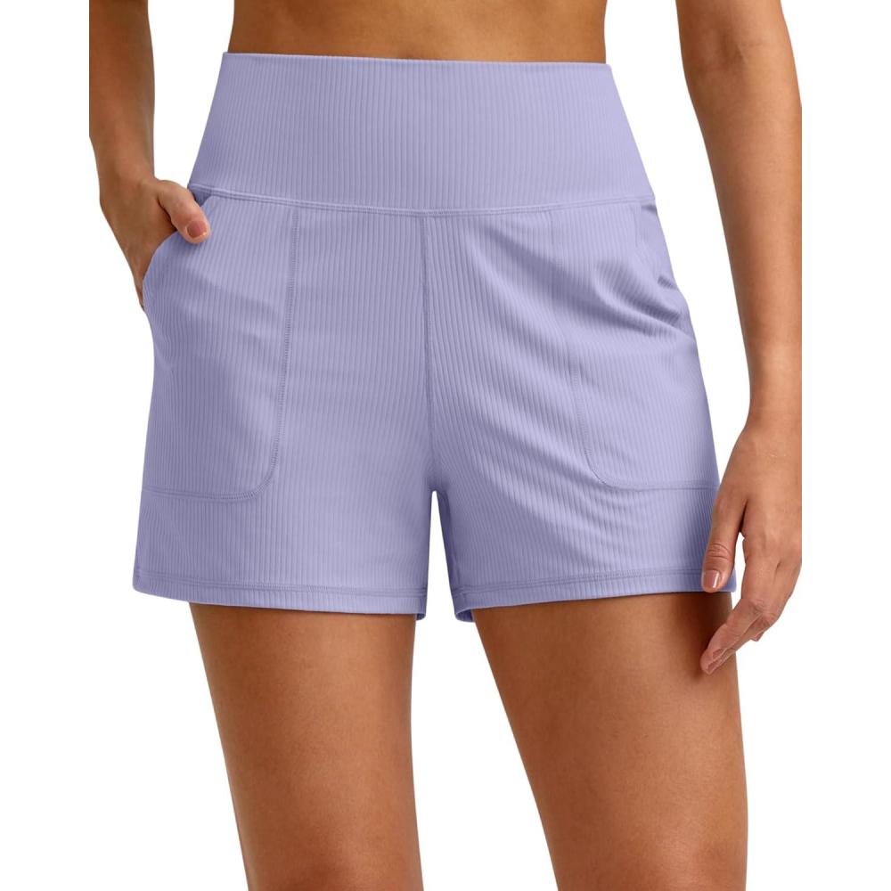 G4Free ShiftReady Athletic Shorts for Women High Waisted Trouser Shorts Trendy Casual Summer Short with Pockets(Lavender)