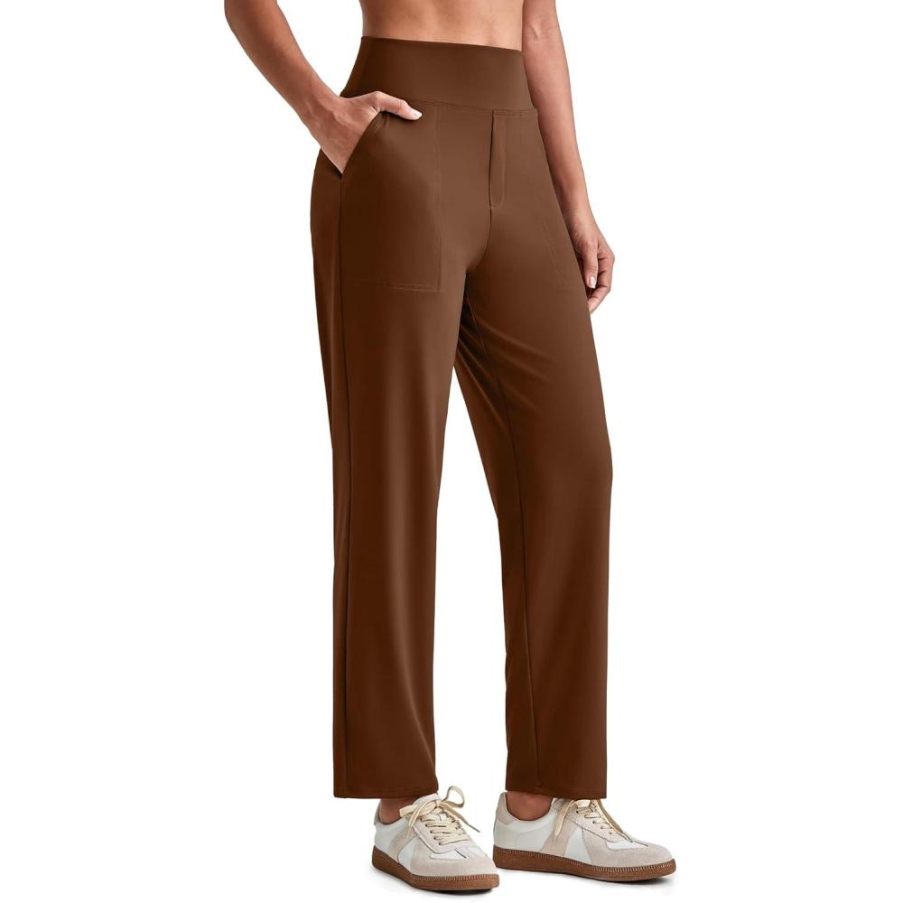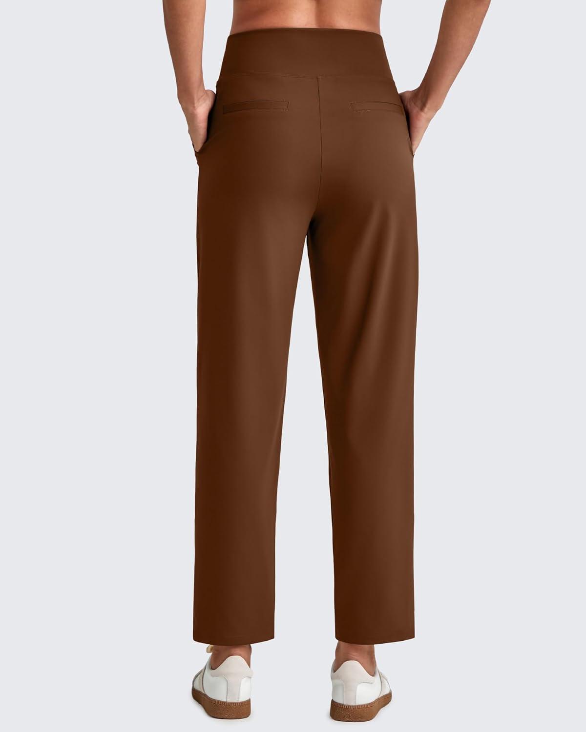 G4Free ShiftReady Womens Ankle Dress Yoga Pants with Pockets Stretchy Business Casual Slacks Work Trousers Travel Pant(Dark Coffee)