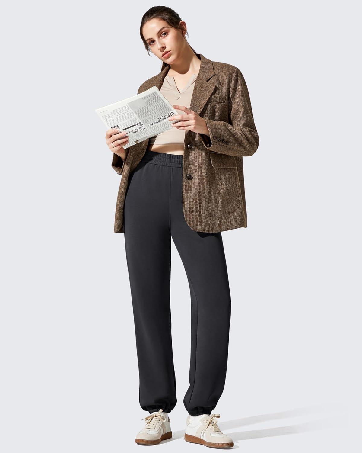 G4Free Smoofit Fleece Lined Joggers Sweatpants Women High Waist Casual Lounge with Pockets Warm Pants Workout Winter Travel(Black)