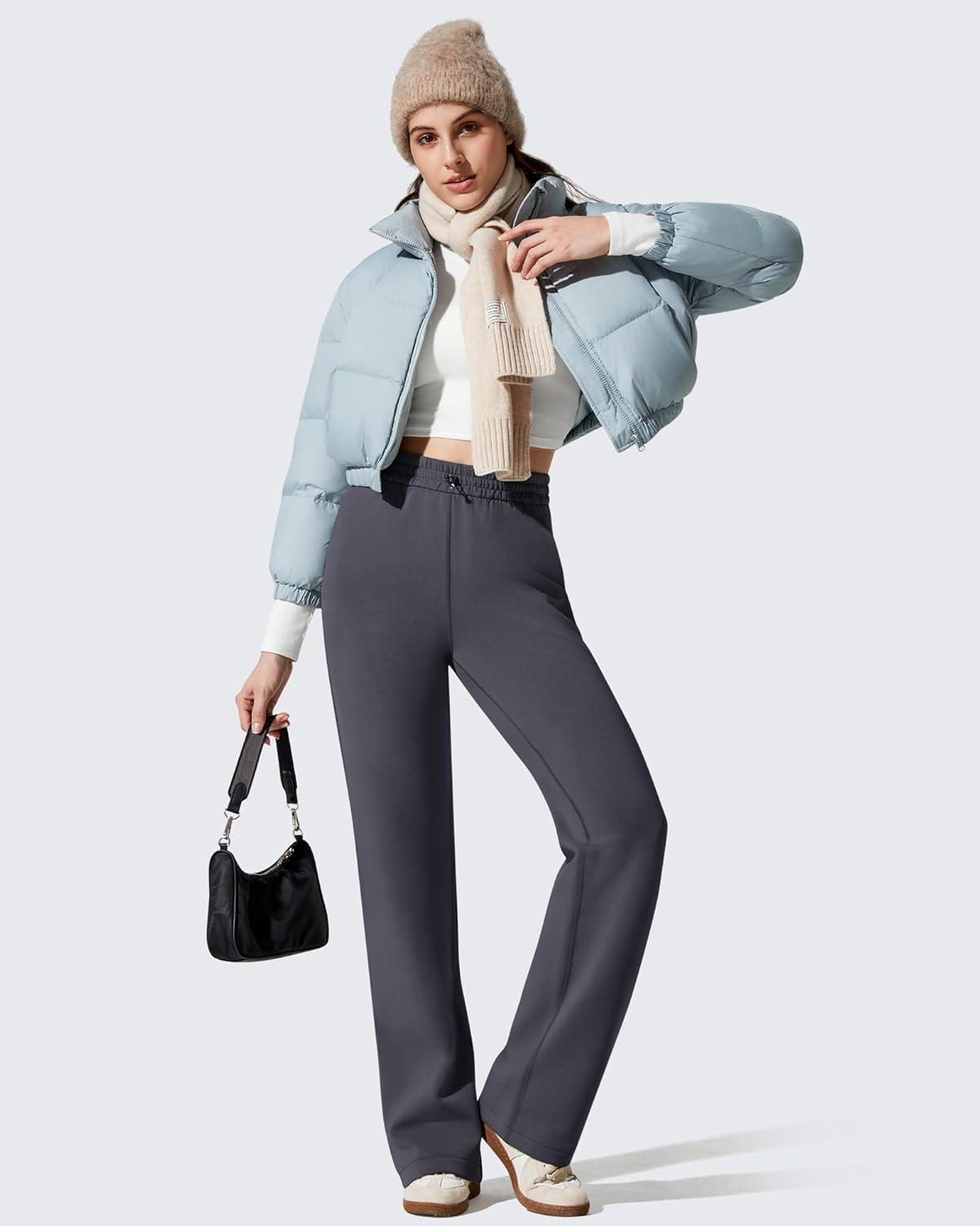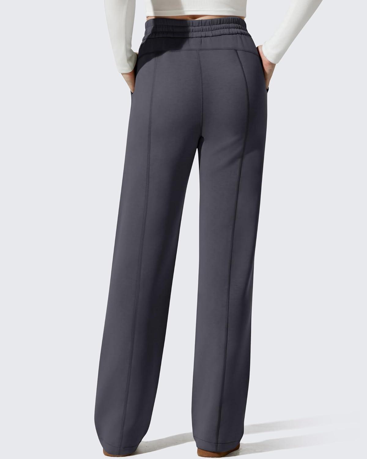 G4Free Smoofit Fleece Lined Sweatpants for Women Wide Leg Drawcord Thermal Casual Pants with Pockets(Dark Grey)