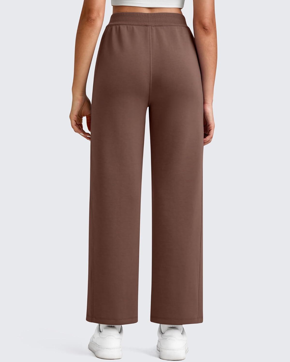G4Free Smoofit Modal Soft 24″/26″/28″ Wide Leg Ankle Sweatpants for Women Elastic Waist 7/8 Length Golf Casual Pants(Coffee Brown)
