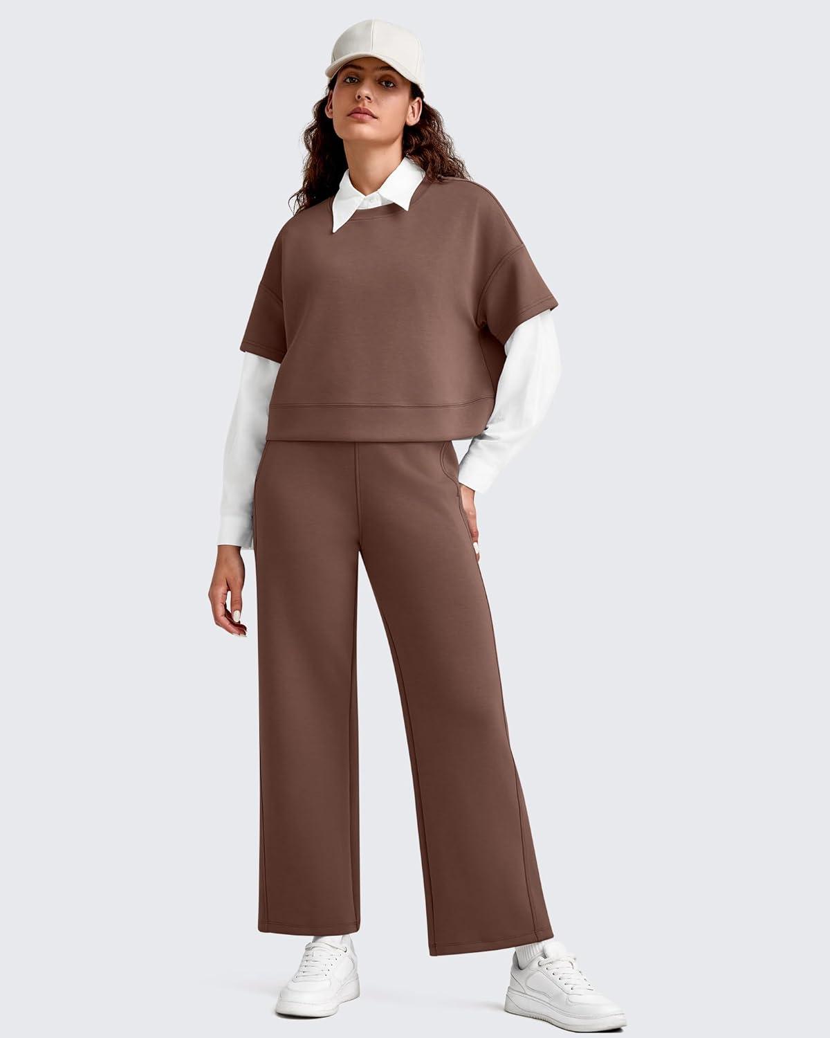 G4Free Smoofit Modal Soft 24"/26"/28" Wide Leg Ankle Sweatpants for Women Elastic Waist 7/8 Length Golf Casual Pants(Coffee Brown)