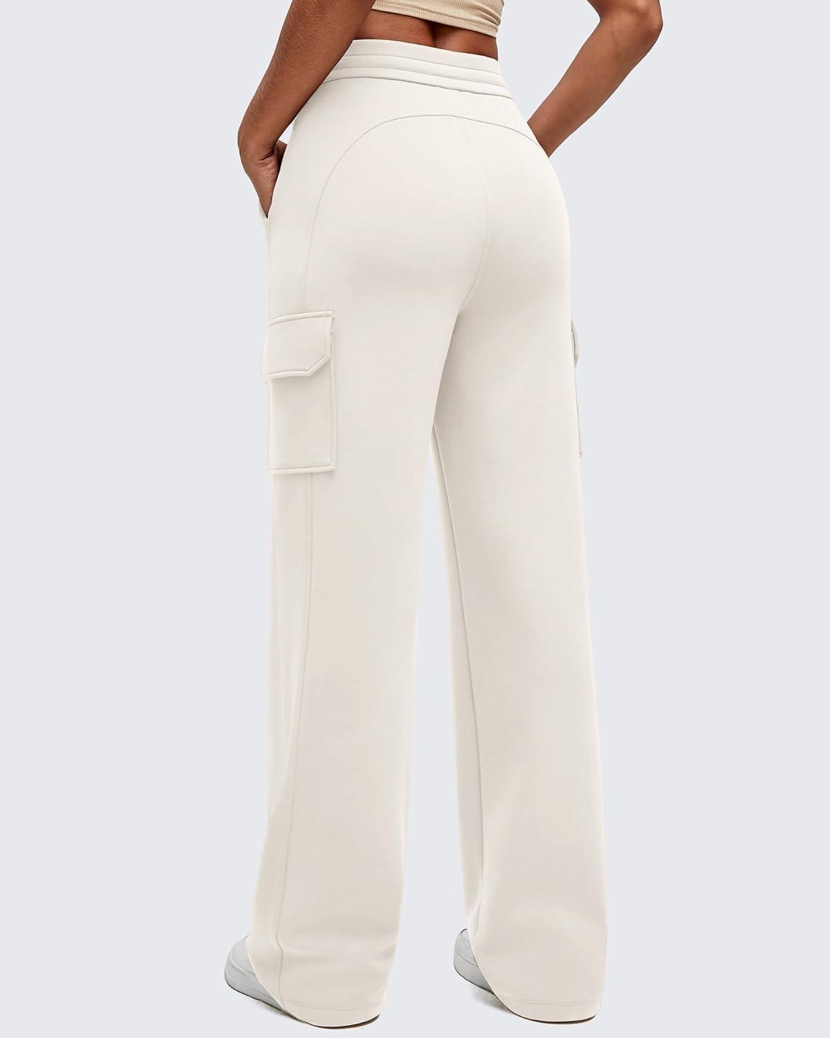 G4Free Smoofit Modal Soft Wide Leg Cargo Sweatpants for Women Drawstring Casual Pants with Pockets(Ivory)