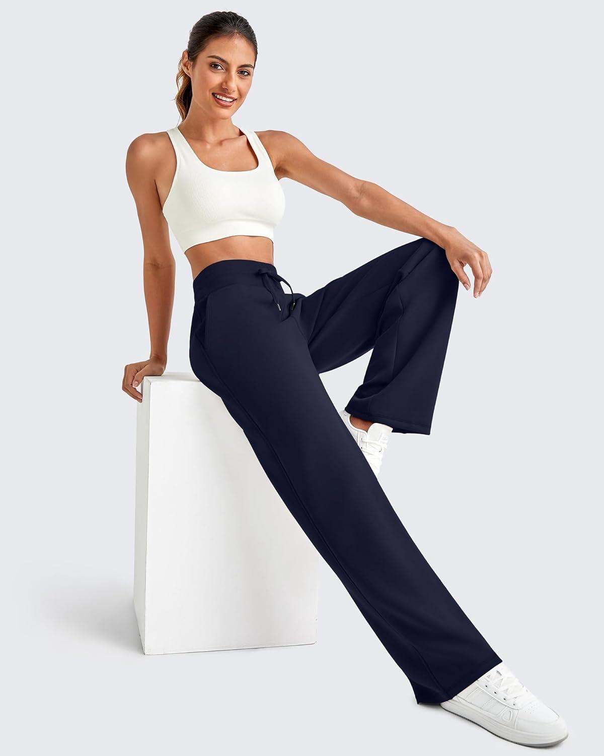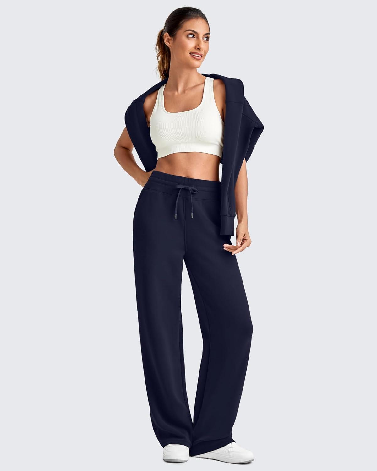 G4Free Smoofit Modal Soft Wide Leg Sweatpants for Women High Waist Drawstring Casual Lounge Pants with Pockets(Dark Navy)