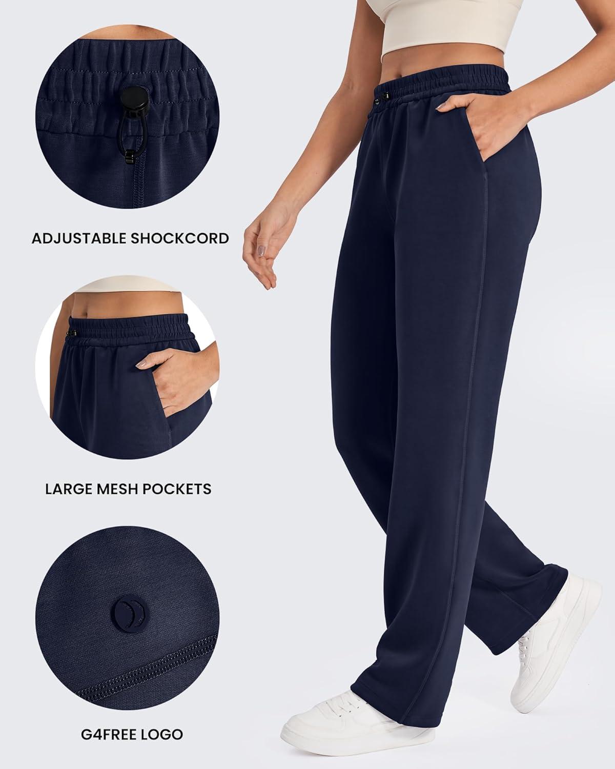G4Free Smoofit Modal Soft Wide Leg Sweatpants Yoga Pants with Pockets Drawcord Casual Lounge Pants Petite/Regular/Tall(Dark Navy)