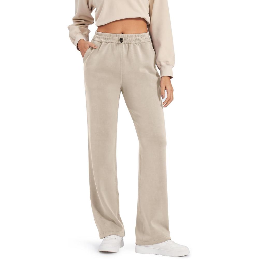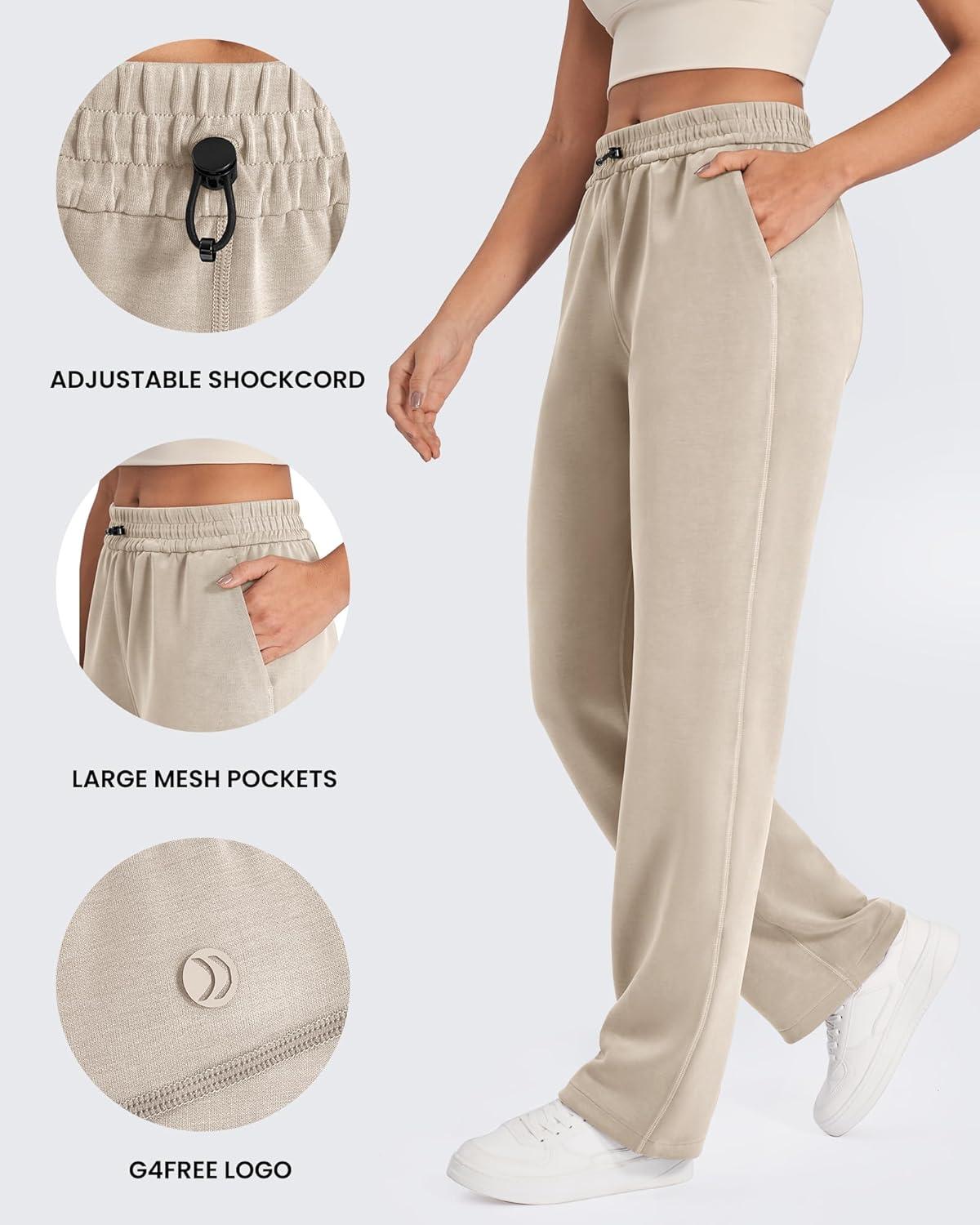 G4Free Smoofit Modal Soft Wide Leg Sweatpants Yoga Pants with Pockets Drawcord Casual Lounge Pants Petite/Regular/Tall(Light Khaki)