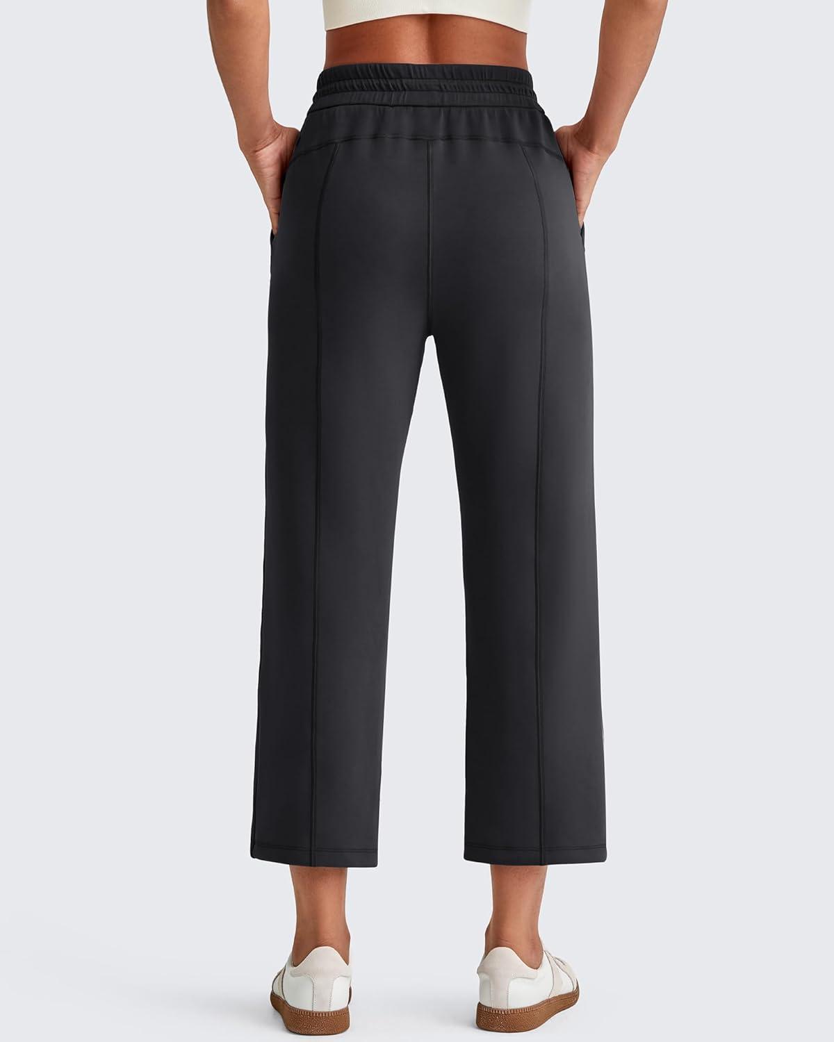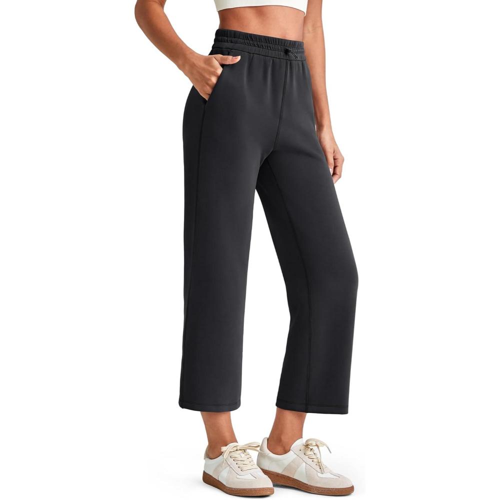 G4Free Smoofit Modal Soft Women Wide Leg Capri Sweatpants Adjustable Shockcord High Waist Casual Cropped Pants with Pockets(Black)