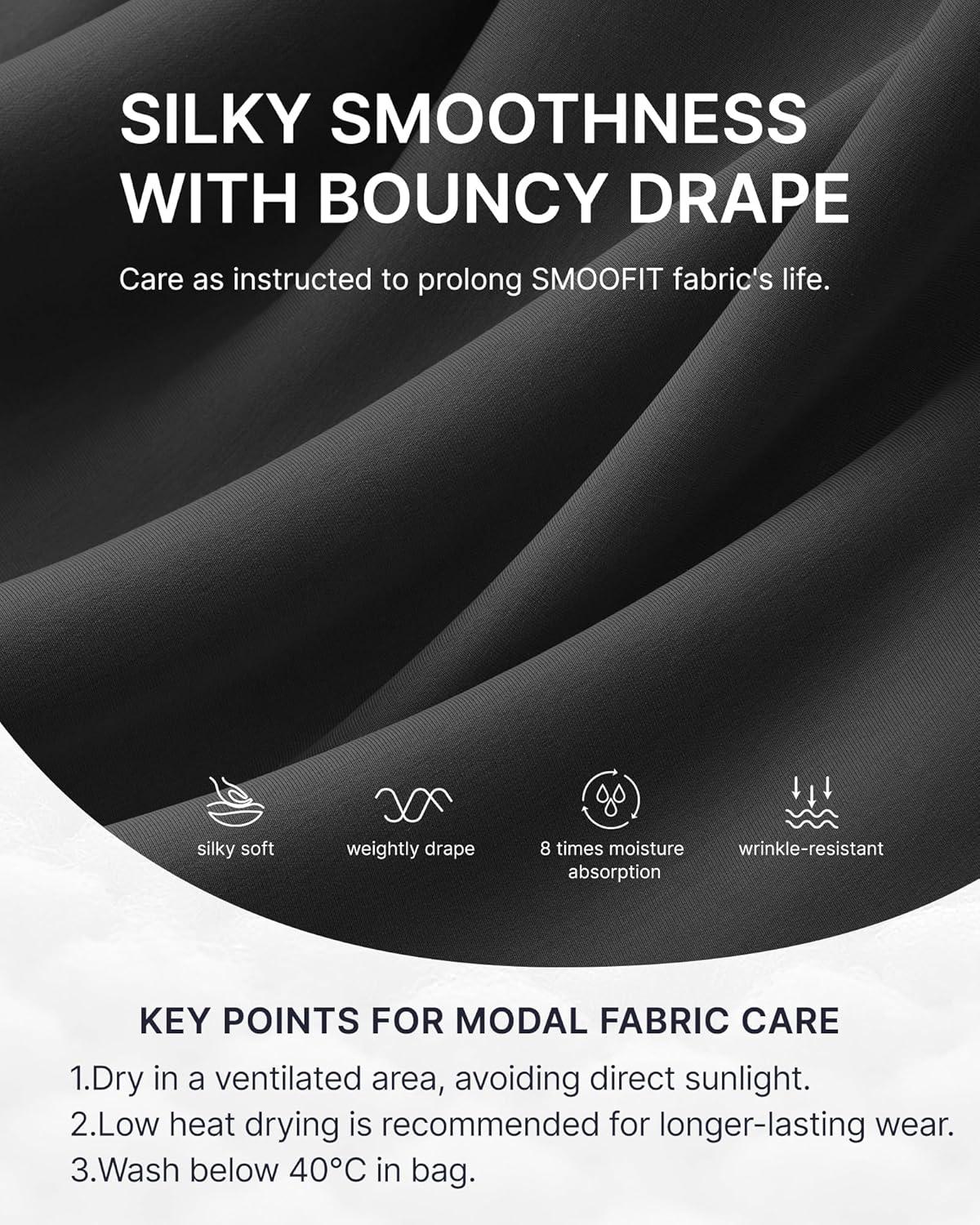 [Ultra-Soft Smoofit Fabric] – Smoofit's ultra-soft, low weight fabric feels smooth like silk and cozy like peach fuzz—designed to hold its shape while keeping you at ease, all day long.