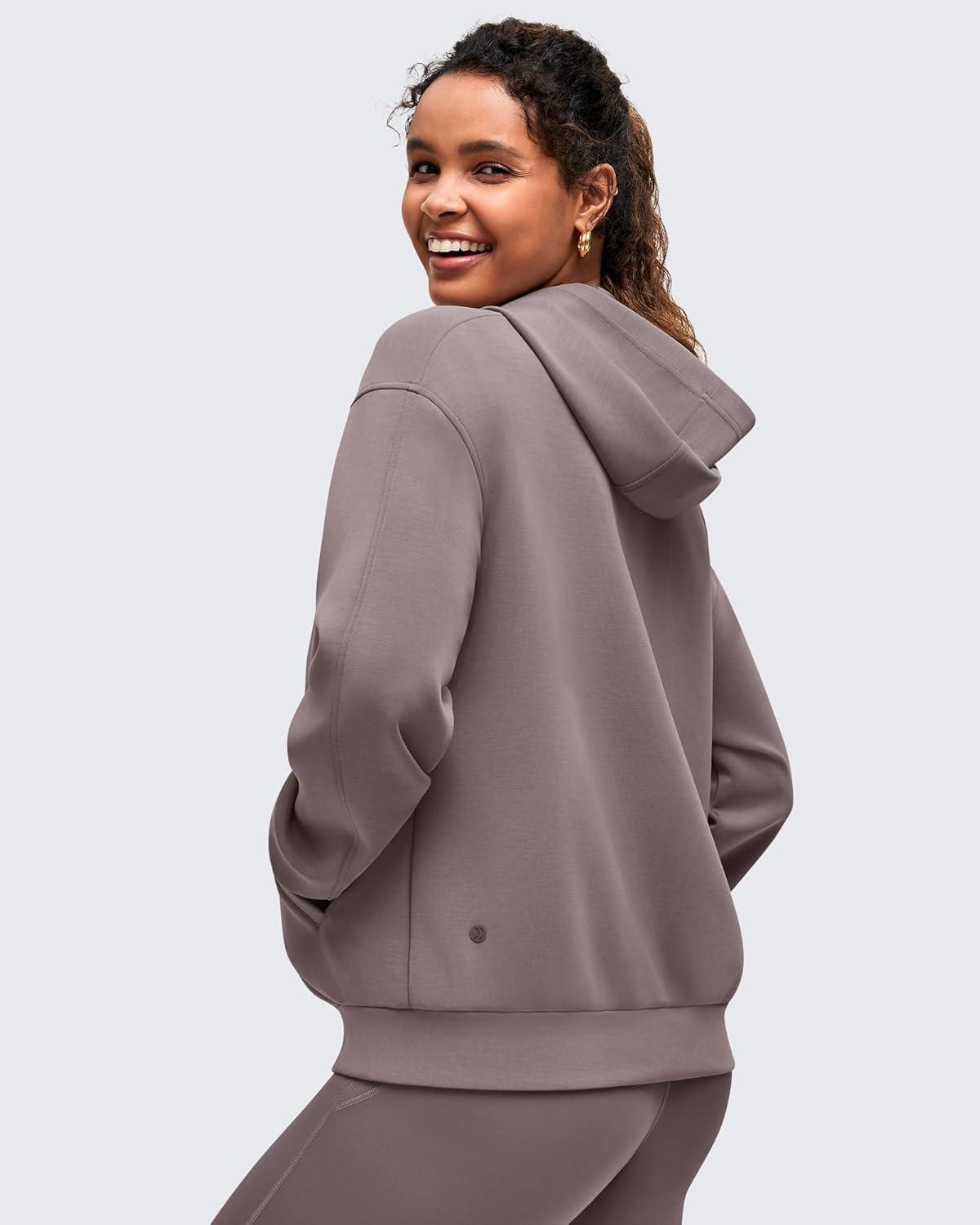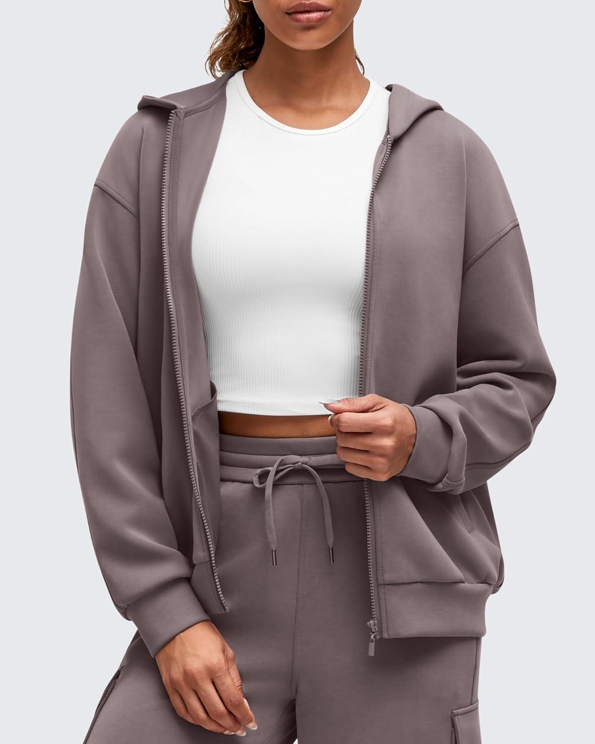 G4Free Smoofit Modal Soft Women’s Full Zip Jackets Loose Fit Casual Hoodies Long Sleeve Tops with Pockets(Taupe)
