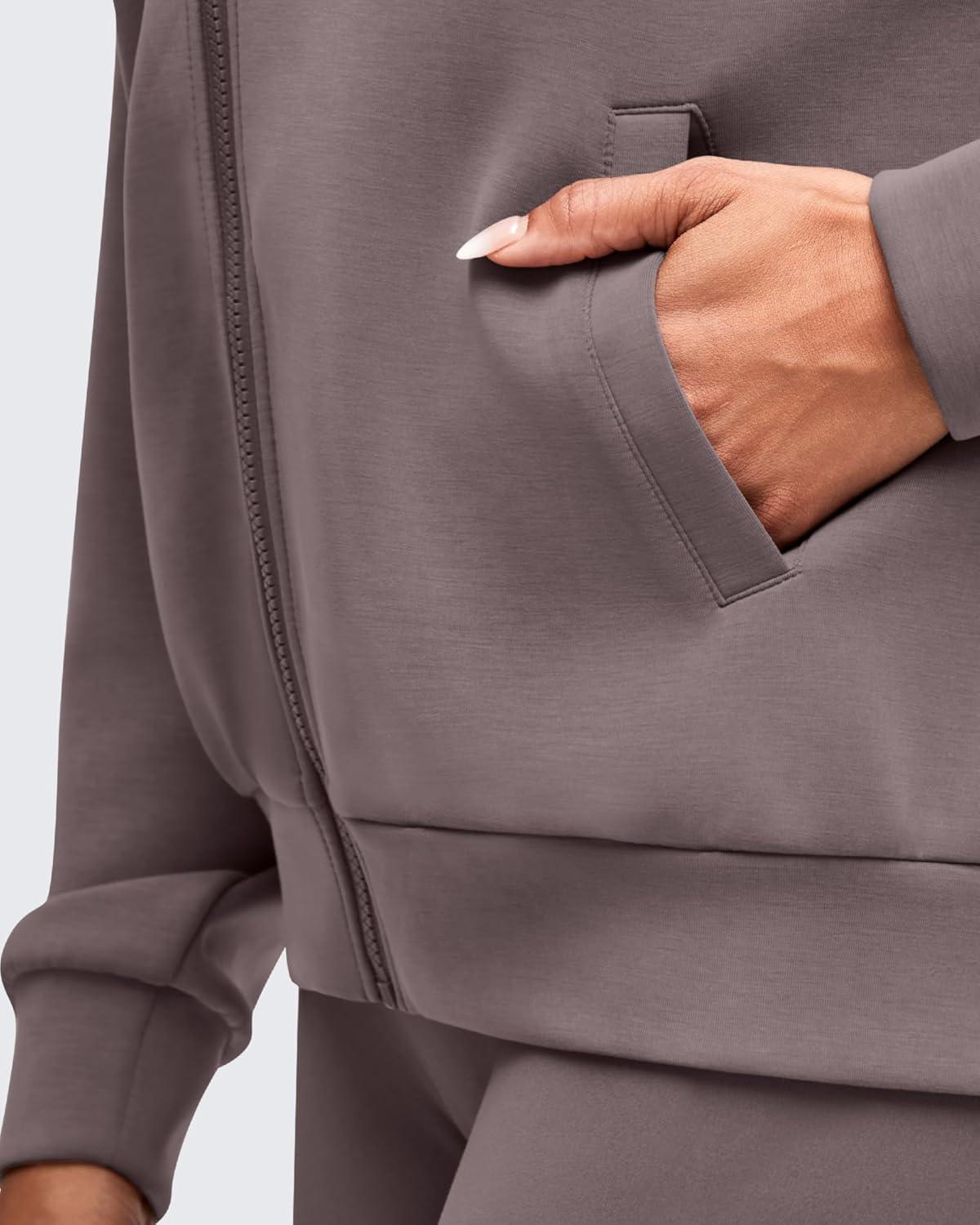 G4Free Smoofit Modal Soft Women's Full Zip Jackets Loose Fit Casual Hoodies Long Sleeve Tops with Pockets(Taupe)