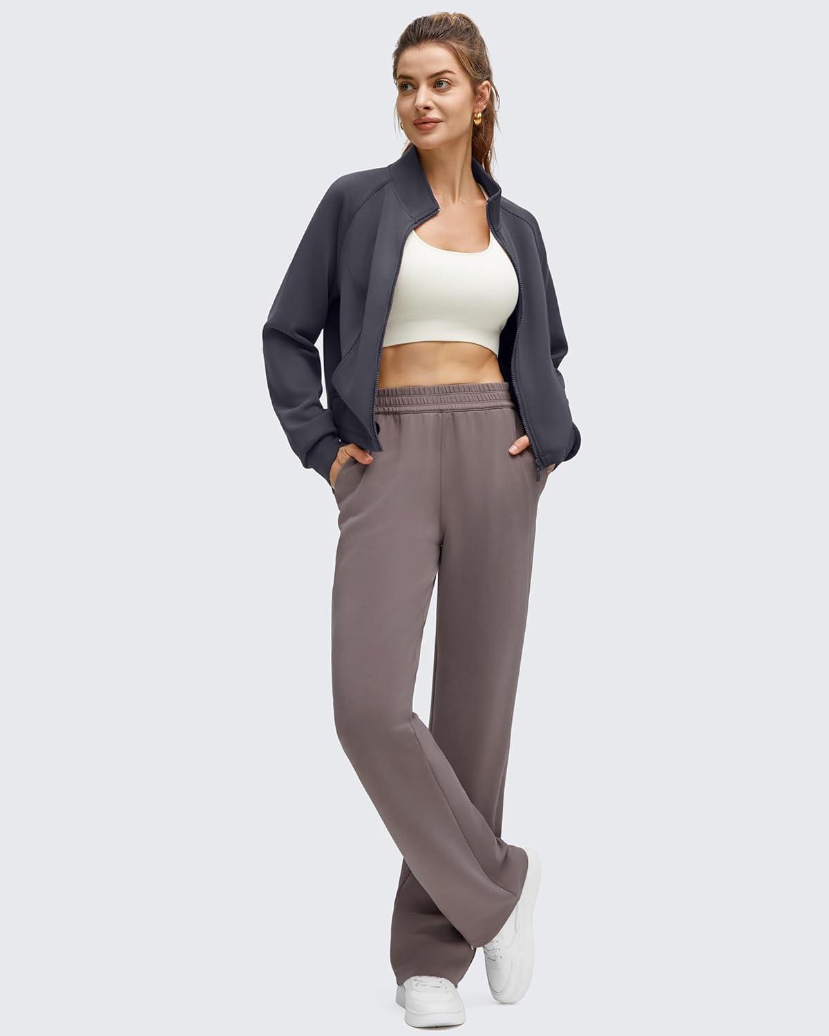 G4Free Smoofit Modal Soft Women’s Zip Up Jackets Mock Neck Casual Sweatshirts Athletic Workout Tops with Pockets(Dark Coffee)