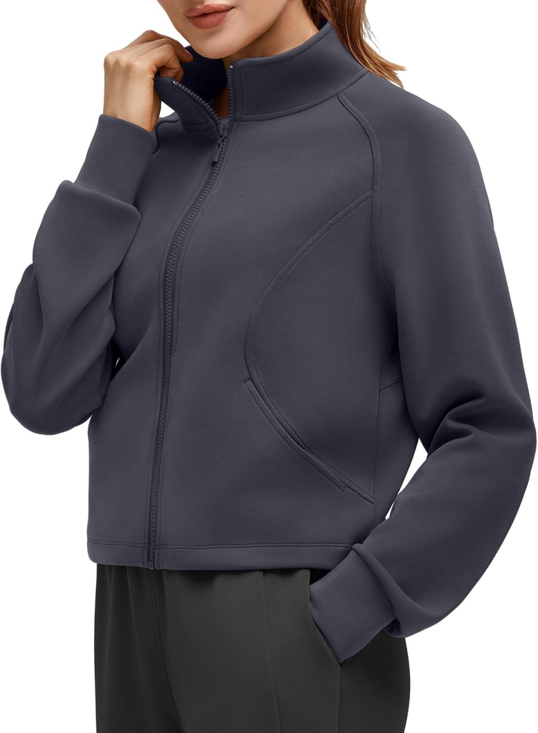 G4Free Smoofit Modal Soft Women’s Zip Up Jackets Mock Neck Casual Sweatshirts Athletic Workout Tops with Pockets(Dark Grey)