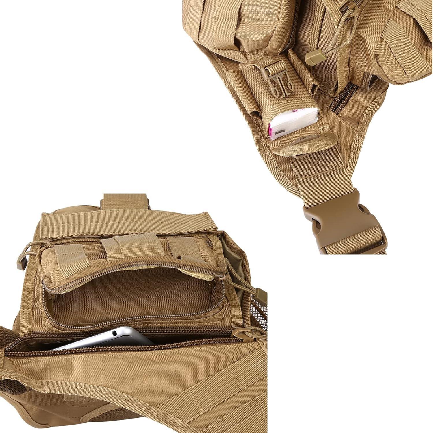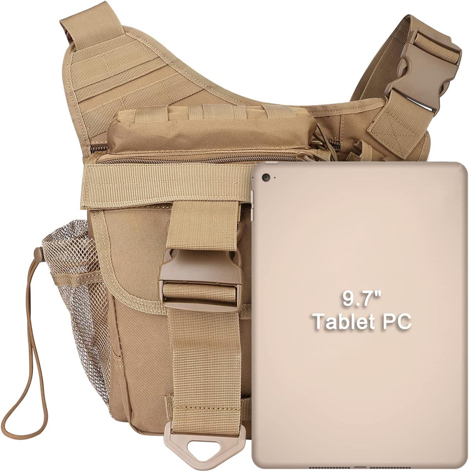 【【Multifunctional】TACTICAL GEAR, MAGAZINE POUCHES; Perfect as Range bag, Camera bag, Tactical assault bag, and other outdoor sports, such as fishing, hiking, mountaineering, cycling, camping. There is a water cup bag on the side, which will stop you from getting thirsty on the way.