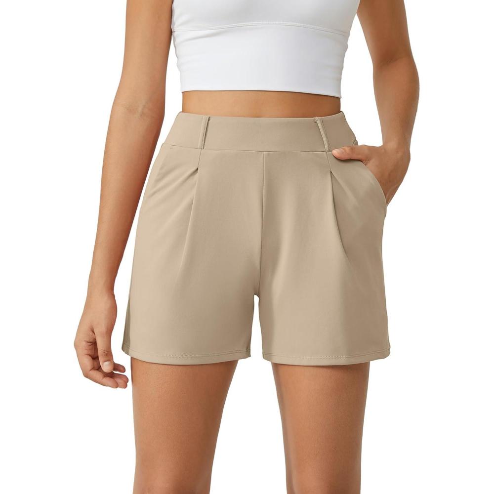 G4Free Trendy Shorts for Women Dressy Casual High Waisted Lounge Summer Pleated Shorts with Pockets(Light Khaki)