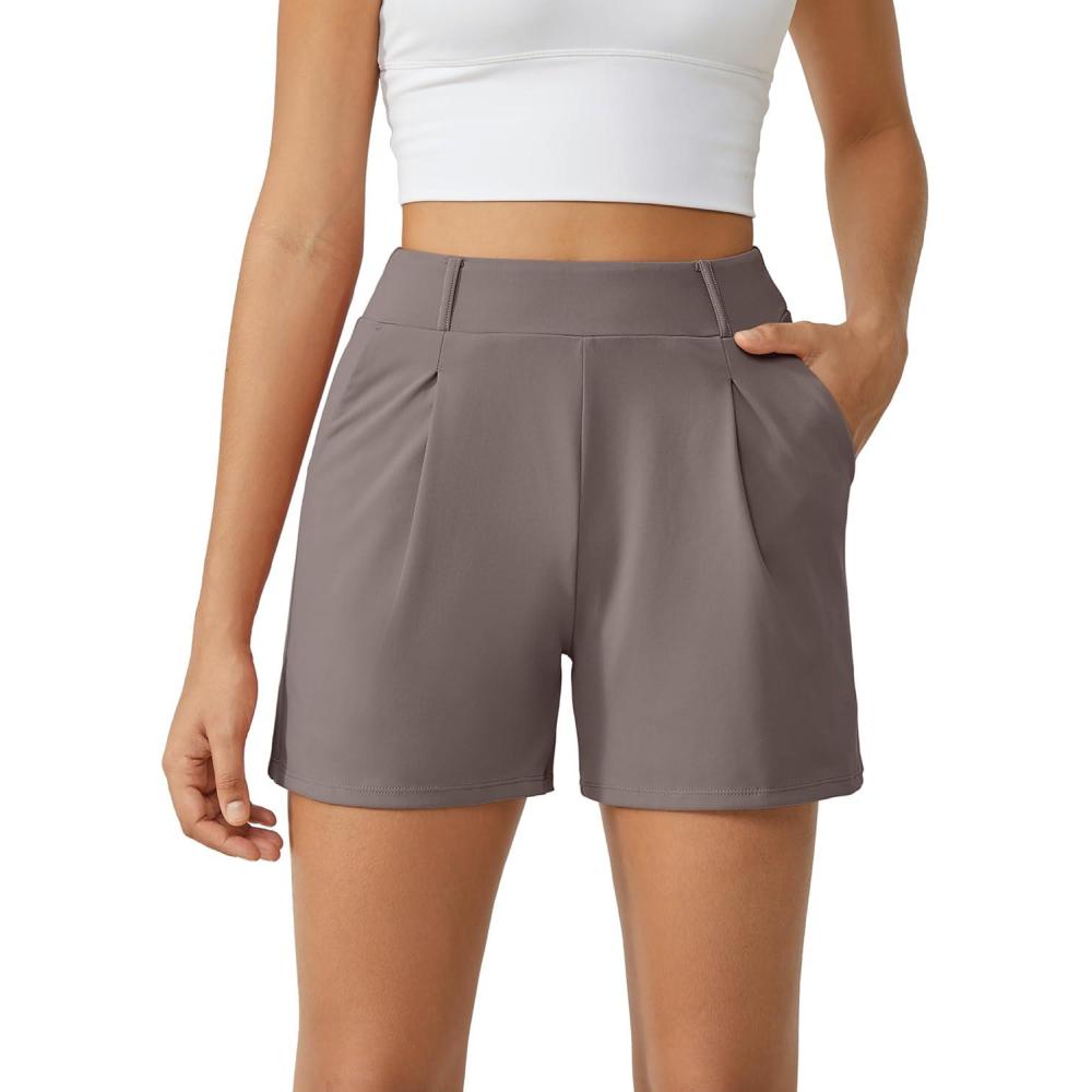 G4Free Trendy Shorts for Women Dressy Casual High Waisted Lounge Summer Pleated Shorts with Pockets(Taupe)