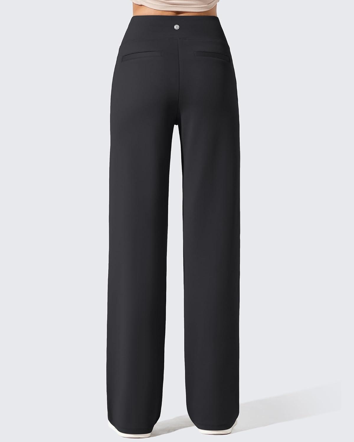 G4Free Women Fleece Lined Pants with Pockets Wide Leg Winter Thermal Work Trousers Dressy Casual Petite/Regular/Tall(Black)