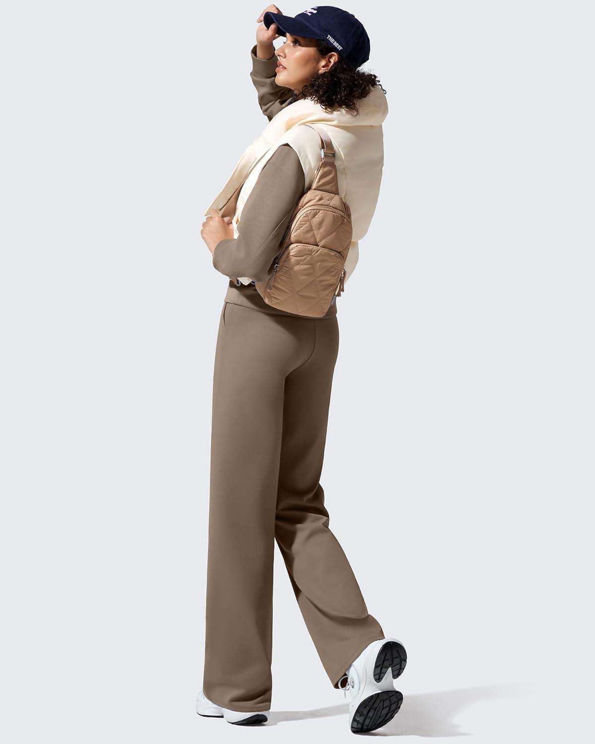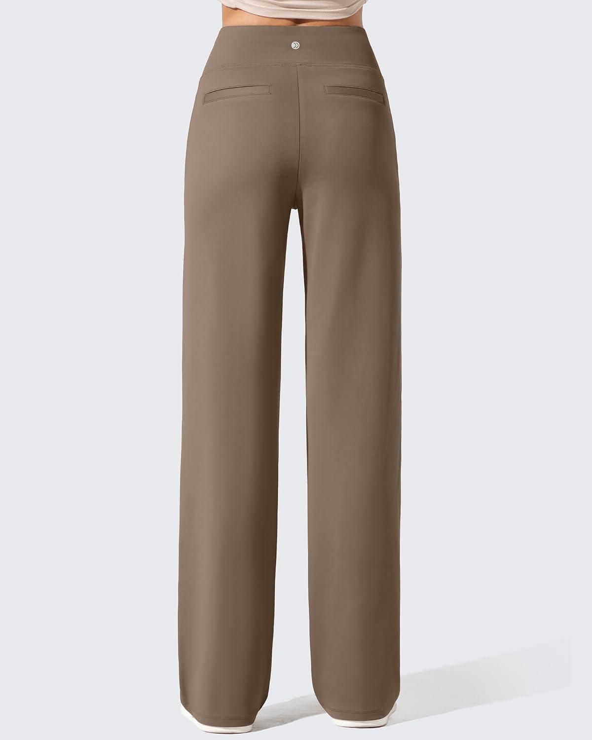 G4Free Women Fleece Lined Pants with Pockets Wide Leg Winter Thermal Work Trousers Dressy Casual Petite/Regular/Tall(Dark Brown)