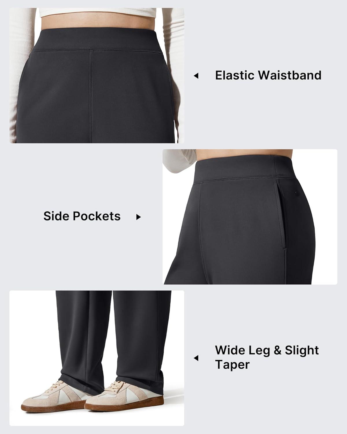 G4Free Women's Fleece Lined Sweatpants High Waisted Wide Leg Pants with Pockets Winter Warm Trousers Casual(Black)