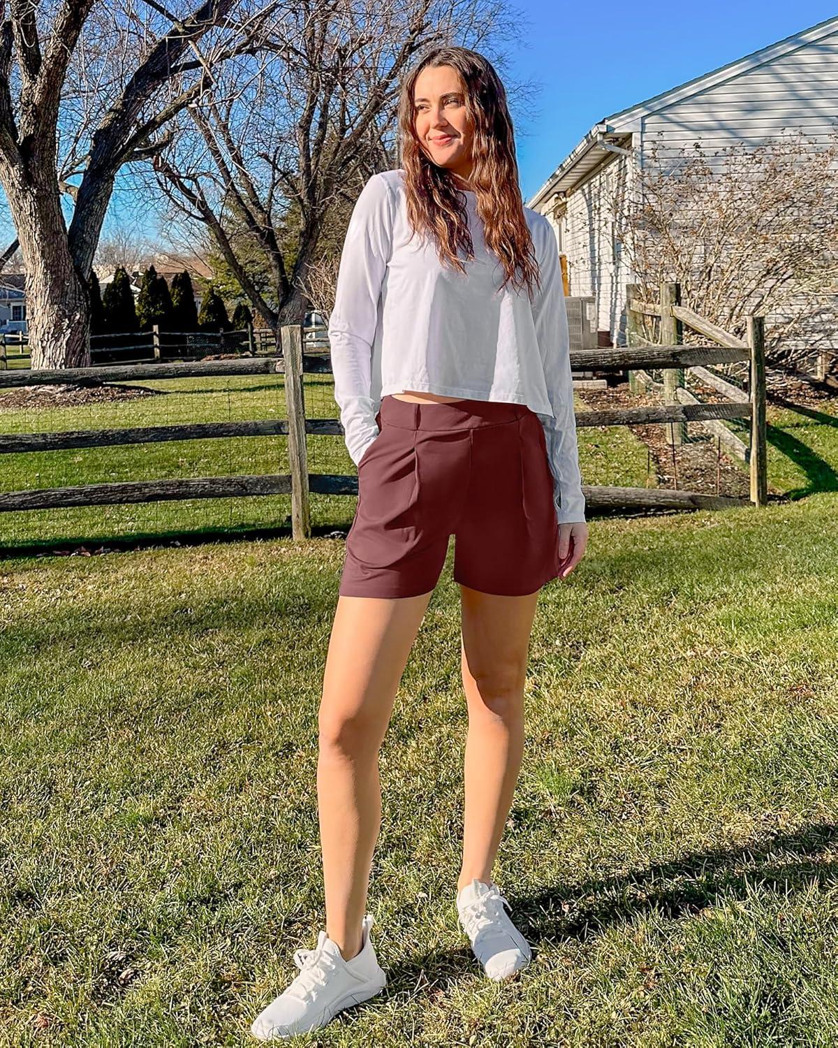 The workout shorts come with belt loops at the waist that can be adjusted freely, giving you a business dressy look. The flexibility waist controls your tummy, making you feel the elastic embrace.