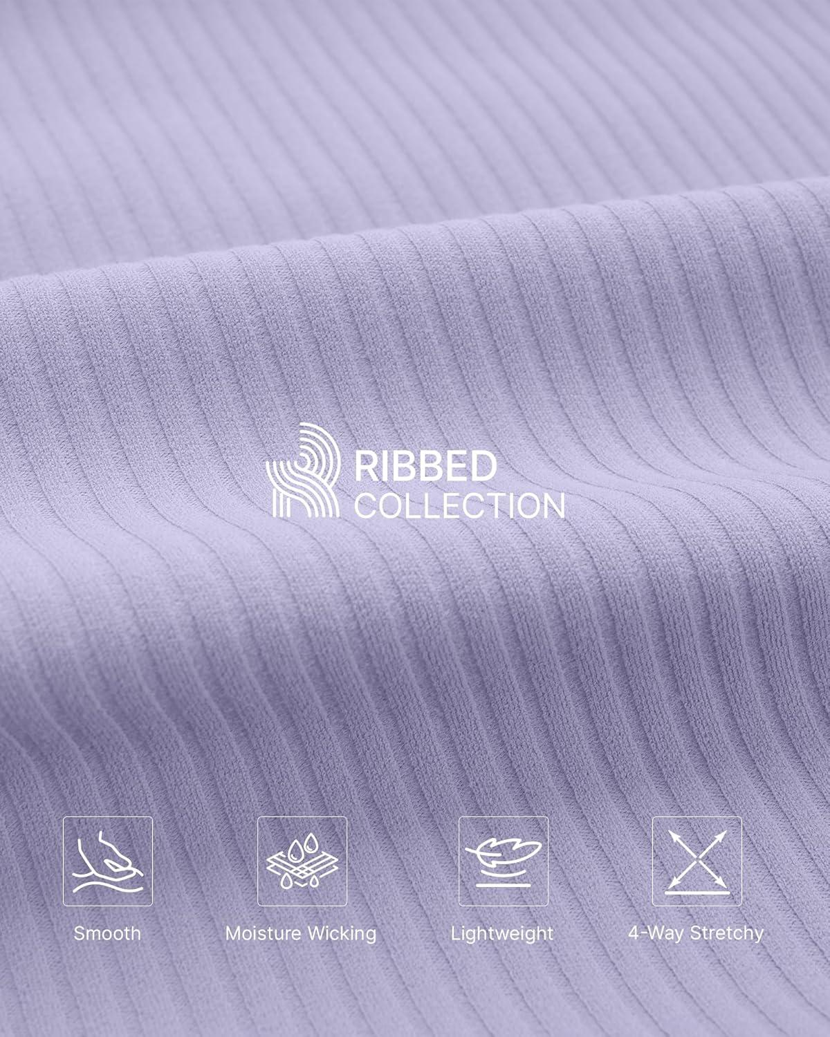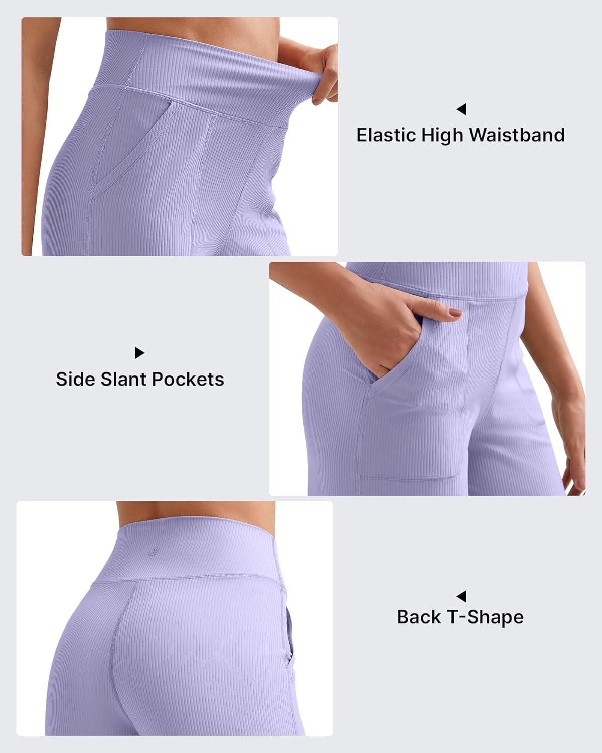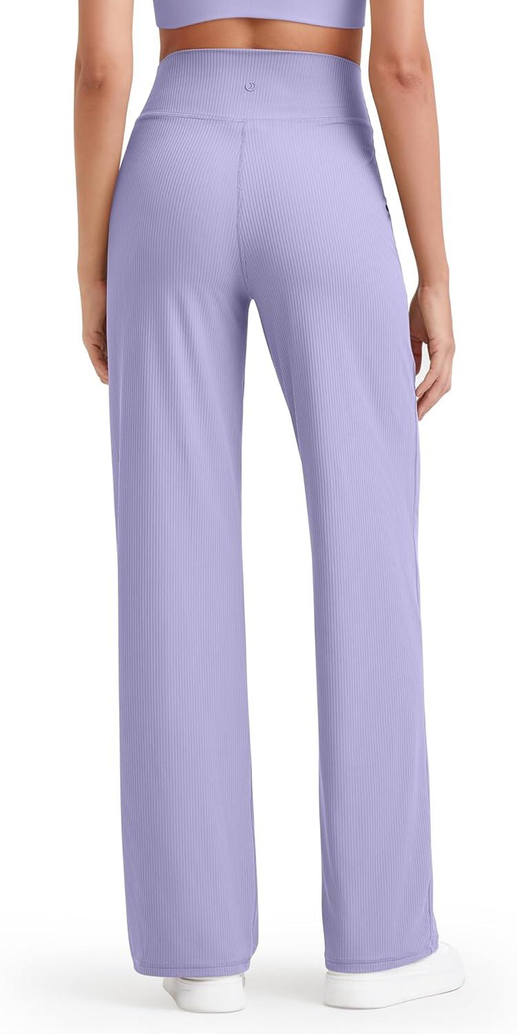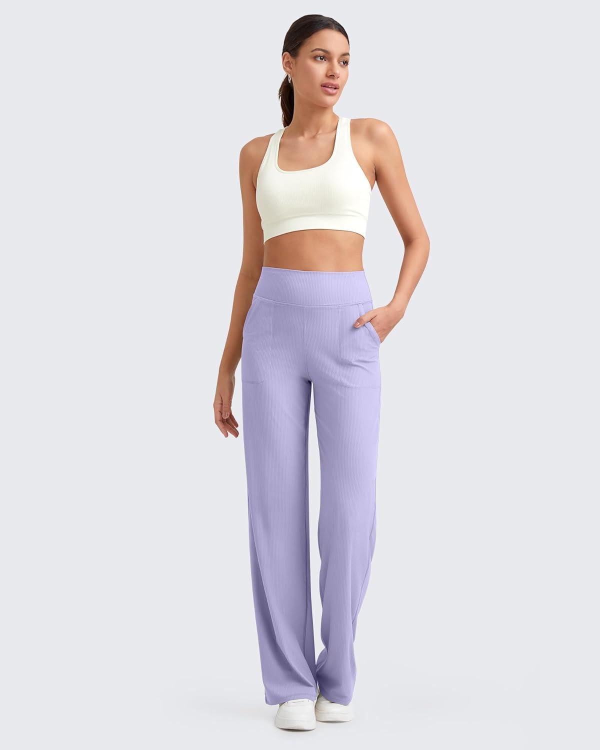 G4Free Womne's Ribbed Knit Wide Leg Pants with Pockets Lightweight Stretchy Yoga Pants Casual Lounge(Lavender)