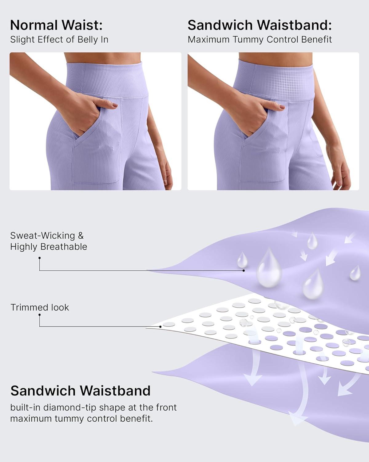 G4Free Womne’s Ribbed Knit Wide Leg Pants with Pockets Lightweight Stretchy Yoga Pants Casual Lounge(Lavender)