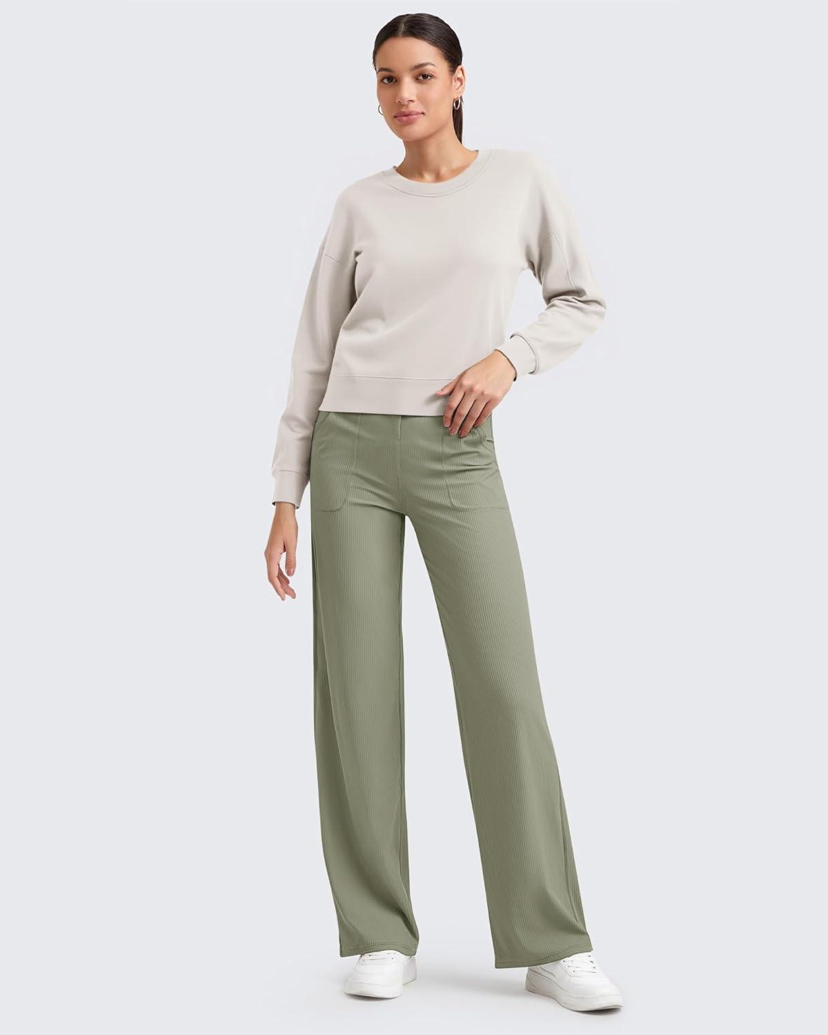 G4Free Womne's Ribbed Knit Wide Leg Pants with Pockets Lightweight Stretchy Yoga Pants Casual Lounge(Misty Green)
