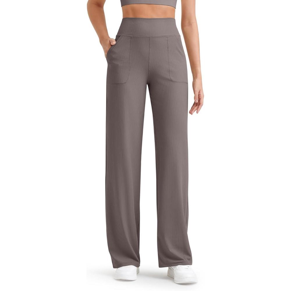 G4Free Womne’s Ribbed Knit Wide Leg Pants with Pockets Lightweight Stretchy Yoga Pants Casual Lounge(Taupe)