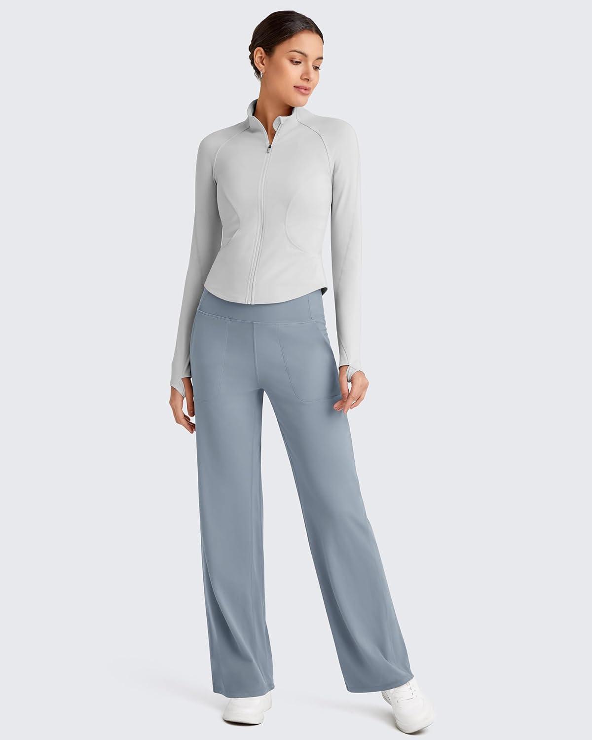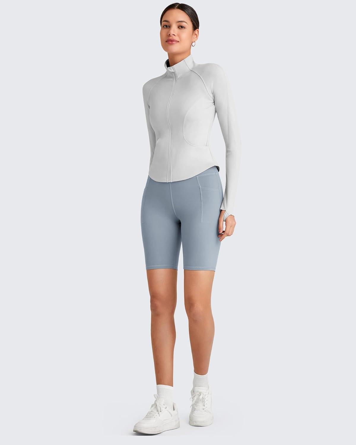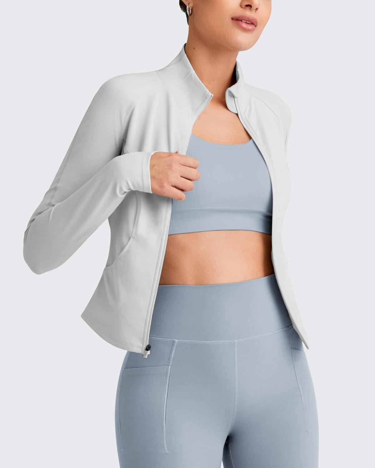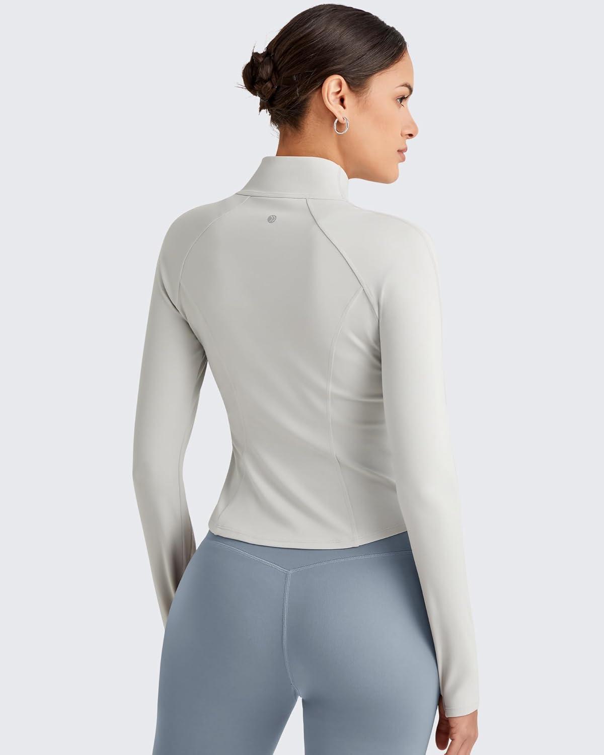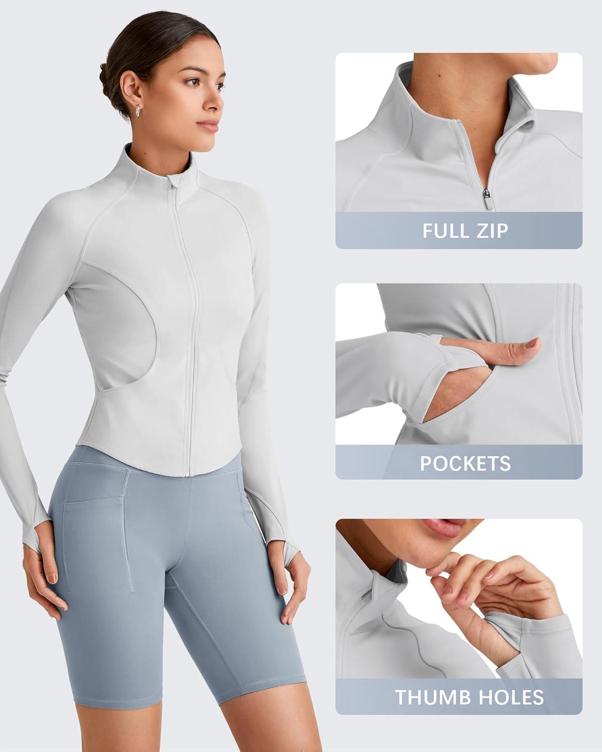 G4Free Workout Jackets for Woman BareFeel Cropped Zip Up Athletic Running Jacket Slim Fit Yoga Tops with Thumb Holes(Light Gray)